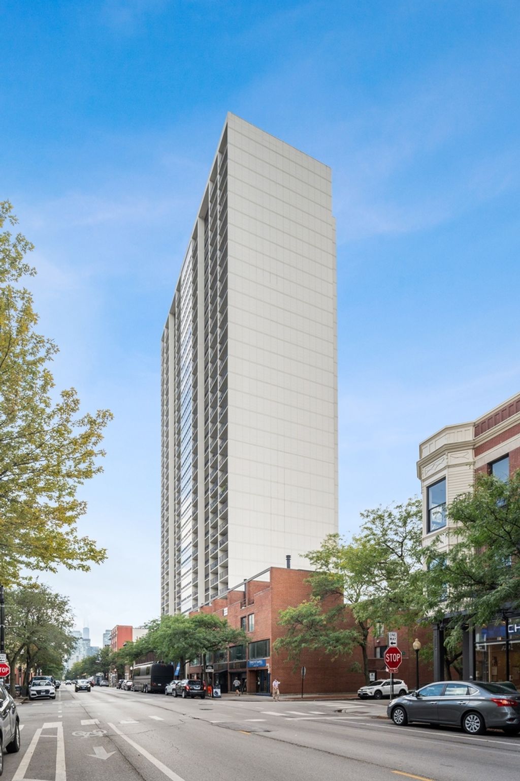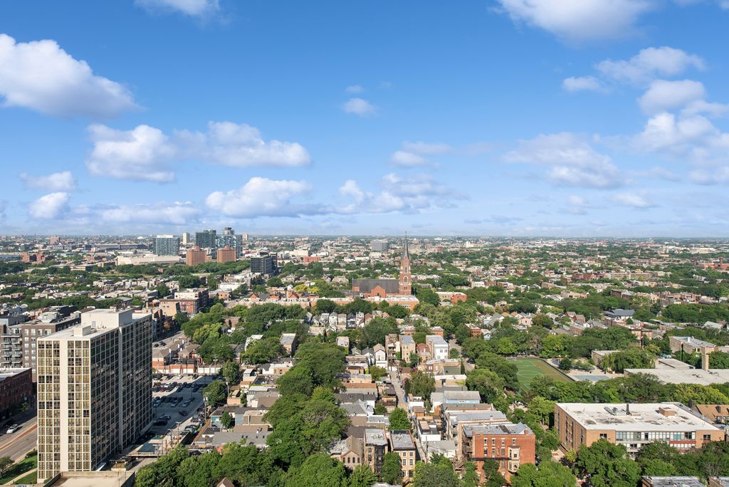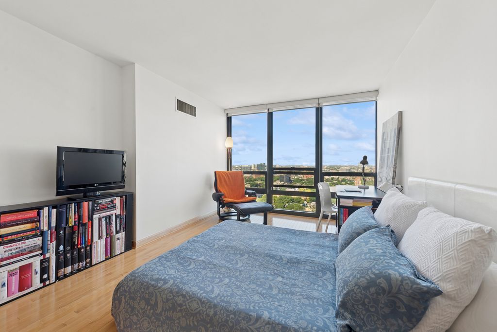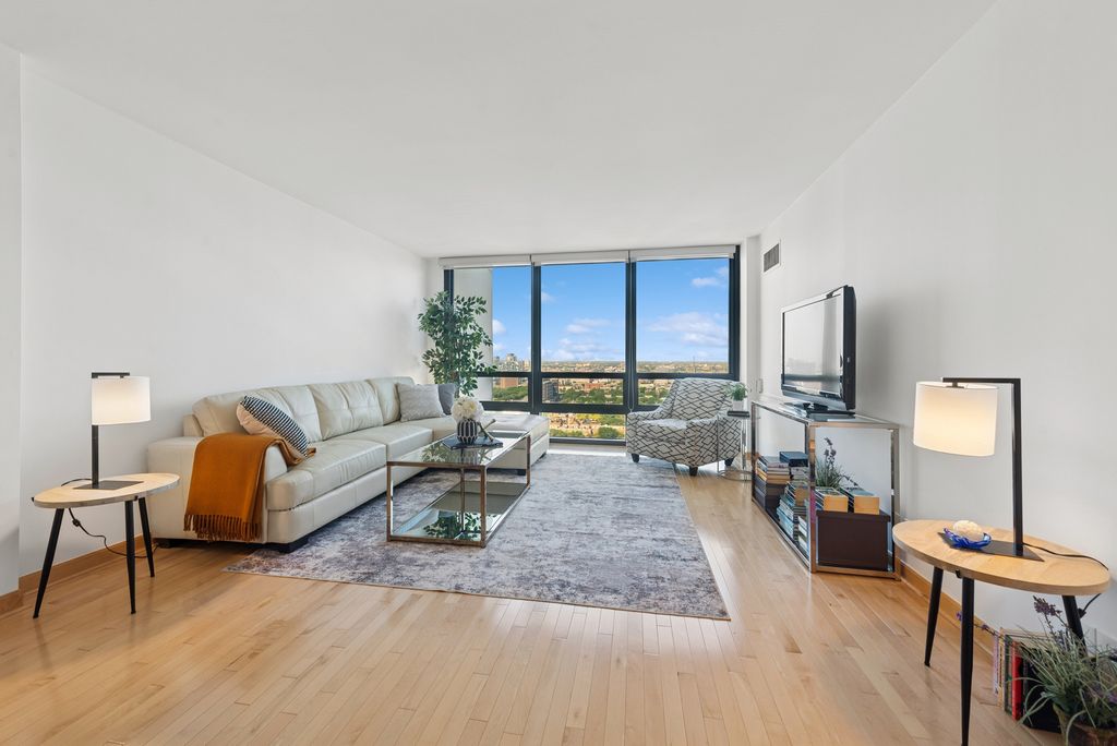 Studio 41 renovated, high floor condo in a high-rise building located in the Old Town with a comfortable, well-designed floor plan and almost 180 degrees of unobstructed, protected views. The spacious living room, enhanced by maple hardwood floor through and floor-to-ceiling windows, is conveniently combined with the dining area. The partially opened white kitchen allows to be a part of the party but offers some privacy. Custom white gloss cabinetry, with plenty of storage and quartz counter space, plus white appliances add to the spaciousness and good flow of the kitchen. Brass finishes. The large bedroom offers plenty of room for bookcases, desk, armchair and queen-size-bed. A beautifully finished white bathroom with large HR brass mirror and Studio 41 Glacier Statuary Porcelain wall around the bathtub create a feeling of relaxation. The unit offers 4 closets, one walk-in closet can be turned into an office space if needed. Living on this street full of cafes, restaurants, boutiques, bakeries, stores, theaters and Starbucks offers everything you need to enjoy a comfortable life. When leaving the building you are welcomed by joyful, comfortable, happy energy...You are steps from the lake and beach, park, pond, nature walk and botanic garden/zoo. You are in the middle of downtown but the feeling is different. You can comfortably stroll along the lake shore to reach the Magnificent Mile. The moment you return home you are welcomed by peaceful and breathtaking views of the western sky. The rhapsody of colors of the setting sun creates a masterpiece framed by the floor-to-ceiling windows visible from almost all rooms. A full-amenity building offers 24/7 door-staff, gym, outdoor pool, sauna, party room, valet shop, experienced on side management and maintenance, leased garage parking, bike racks & storage lockers. Heat, A/C, water included in HOA. TV/ basic cable, Wi-Fi internet access extra $59.16. Pets allowed. No special assessment in 30+ years. Pet-friendly (up to 30 lb). Steps to CTA buses & train. An Easy access to LSD and W-90. Property is staged.
