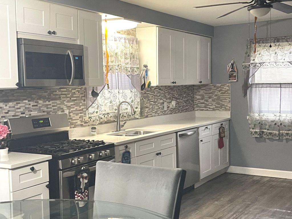Beautifully updated raised ranch (2020) featuring 3 bedrooms and 2 baths with an open-concept design that seamlessly connects the kitchen, living, and dining rooms. Updates in 2020 included new furnace, windows, and central air. Enjoy gleaming hardwood floors, a stunning kitchen with porcelain tile flooring, granite countertops, new white shaker cabinets, a stylish backsplash, and stainless steel appliances. The enormous finished basement offers a bedroom and spacious living area, perfect for entertaining or guest accommodations. Situated on a large corner lot, this home boasts a gated backyard ideal for gatherings. Nothing to do but move in and unpack!........This is a SHORT-SALE
