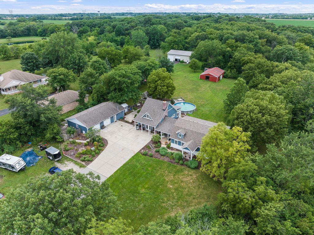 Hilltop Retreat on Over 6 Acres - A Rare Find in Channahon! Welcome to 25726 S Blackberry Drive - a PRIVATE, elevated Equestrian Paradise offering over 4,000 sq ft of living space on more than 6 acres of scenic land. This unique beautifully maintained horse property blends comfort, function, and versatility - perfect for nature lovers, hobby farmers, or those seeking a peaceful lifestyle just minutes from town. Step inside to discover a spacious floor plan featuring a main-floor primary suite, ensuite bathroom with a large walk-in closet and hardwood floors. The main level also boasts two fireplaces-a cozy two-story fireplace in the living room and a second in the family room-adding warmth and charm throughout. 4 Seasons room with a wet bar - perfect for enjoying your surroundings year-round - ideal for a reading nook, coffee bar, or peaceful sitting area. The kitchen features granite counter tops and white cabinets includes a dining area with patio access. Main floor also features a office. A full finished basement provides endless possibilities, including a wet bar, full bathroom, possible 5th bedroom (escape window), storage, and additional family room / living space. Possible RELATED LIVING! Outside, the amenities shine: Large Pole Barn with horse stalls - perfect for equestrian use or storage. Greenhouse/she-shed, glammed chicken coop featuring a chandelier and run, and heated 1,800 sq. ft. GARAGE with attached workout room and half bath! Above-ground pool for relaxing summer days! Enjoy year-round comfort with 2 furnaces and 2 A/C units, and bring your dreams of country living to life in this one-of-a-kind retreat!