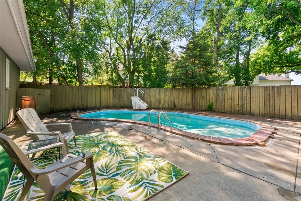 Retro charm meets endless potential! Welcome to this one-of-a-kind midcentury modern home, tucked into a shady, park-like setting complete with your own pool. Each of the three fireplaces have a different finish. From the moment you arrive, you'll notice the charm and character this property offers-inside and out. The breezeway between the garage and home is more than just a pass-through-it features its own built-in fish pond, adding a whimsical touch you won't find anywhere else. The back storage room in the basement was built as a tornado shelter. Yes, the home is ready for your updates, but the possibilities are endless. With a solid structure, unique mid-century details, and features you simply won't find in today's builds, this property is a rare opportunity to bring your vision to life. Don't miss the chance to own a home that combines retro personality with future potential-and all in a serene, tree-filled setting. Some updates that have been done- whole house generator, Custom Pella slider in the breezeway installed 9 years ago, water heater a few months old, newer roof 3-4 years, gutters and downspouts on house and shed was reroofed also, newer toilets in the master bathroom and basement bathroom, One step ramp garage into house.