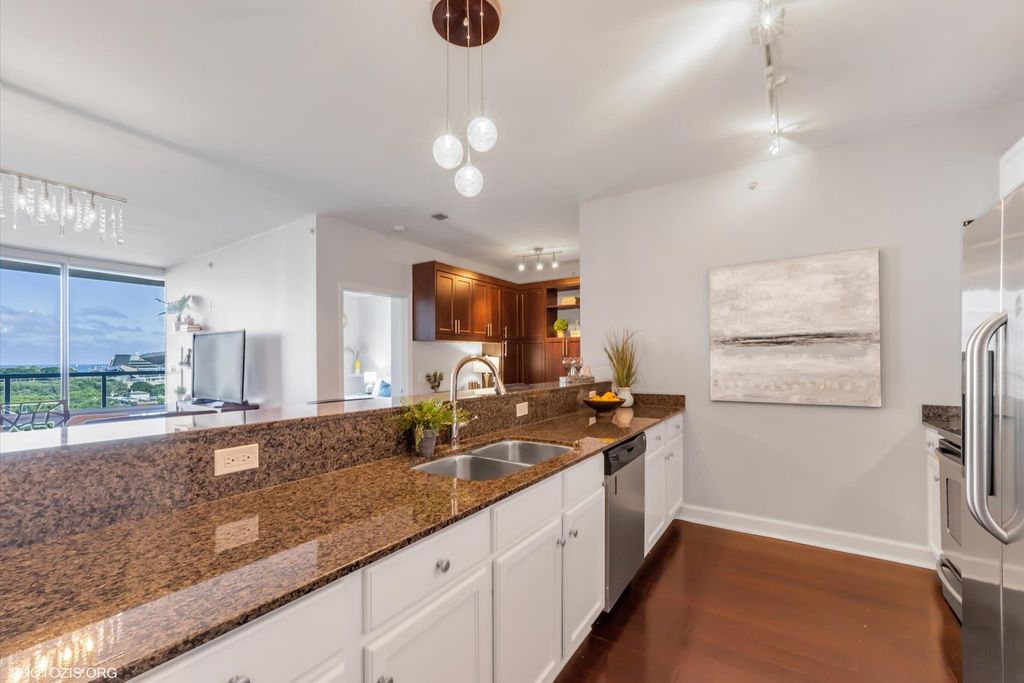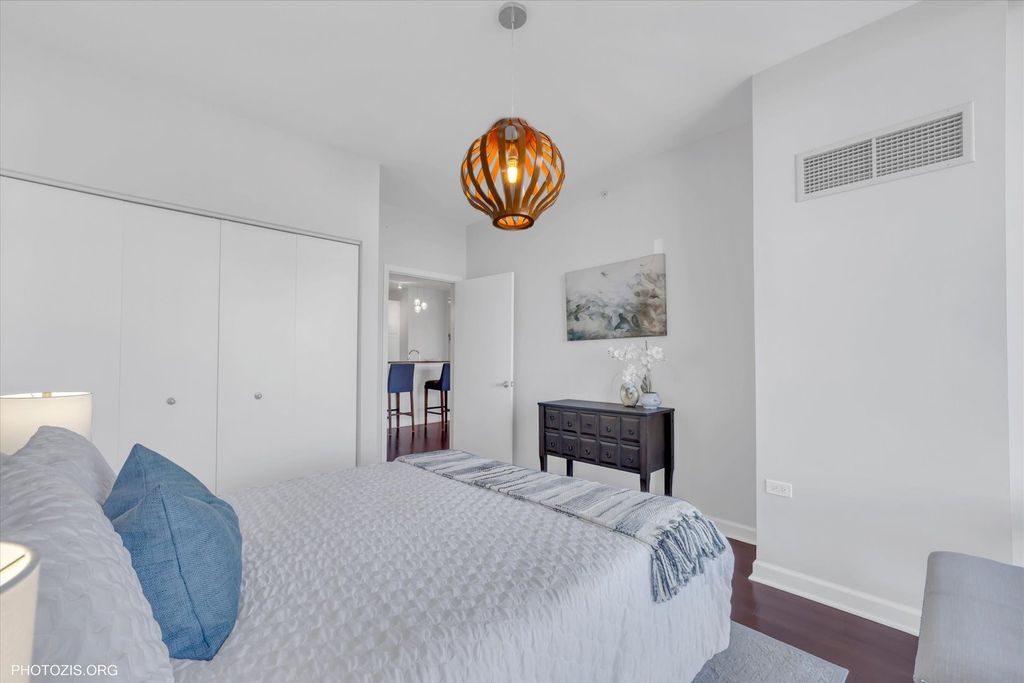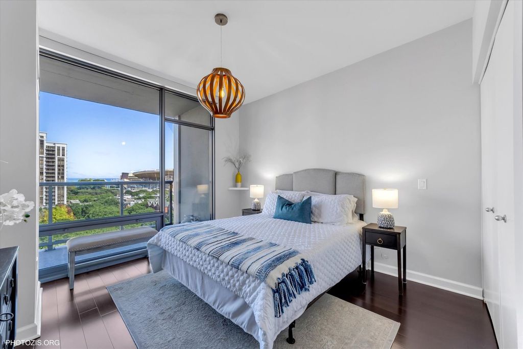 Stylish 1 Bedroom + Office with Lake & Soldier Field Views Enjoy city living at its best in this modern 1 bedroom plus office, 1 bathroom condo in the heart of the South Loop. The home features sleek dark flooring throughout, a bright kitchen with white cabinetry, granite countertops, and stainless steel appliances. A professionally designed office with custom cabinetry and granite workspace adds both functionality and style. Floor-to-ceiling windows frame incredible views of Lake Michigan and Soldier Field from both the living room and bedroom. The extra-wide private balcony extends the entire length of the unit, offering plenty of space for outdoor dining and relaxation. Building amenities include a 24-hour door staff, top-floor indoor pool and whirlpool, a state-of-the-art fitness center, and a sky lounge. Ideally located near Roosevelt CTA, grocery stores, restaurants, shops, museums, and the lakefront. Garage parking available for $35,000.