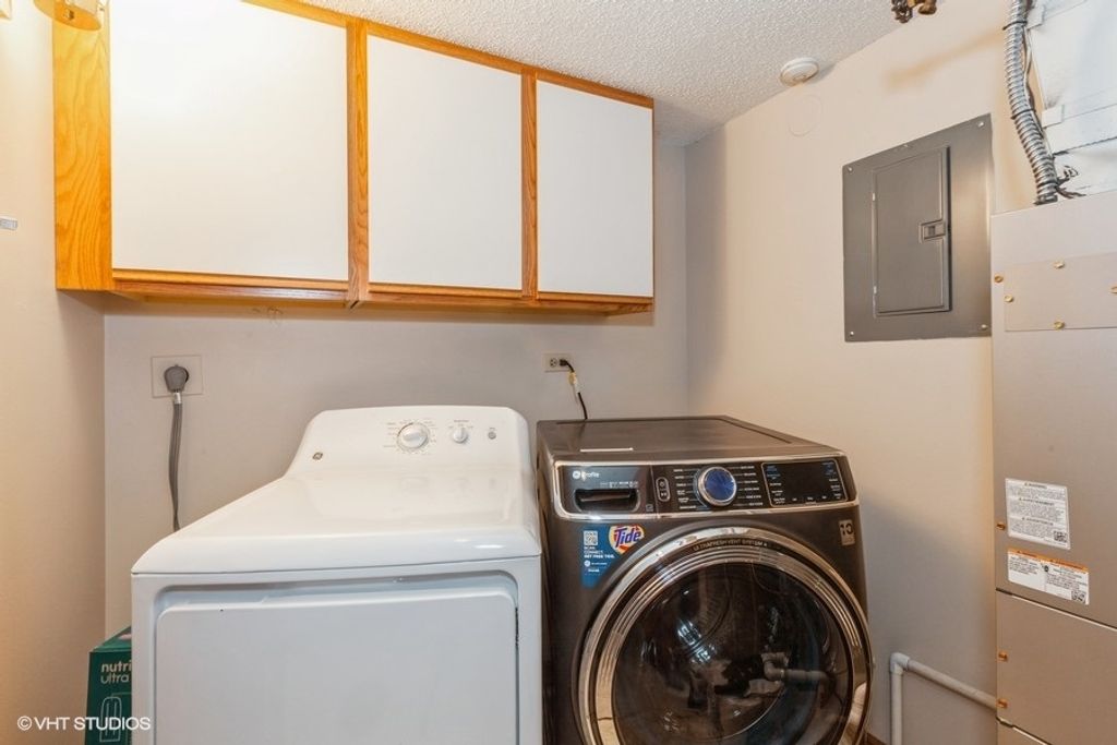 Rare River Walk View! This stunning corner unit offers unobstructed views of the picturesque Quarry Lake and iconic Carillon Bell Tower. Enjoy breathtaking vistas year-round, both from inside the home and the expansive 140-square-foot wraparound balcony. The spacious primary bedroom features ample room for relaxation, while the versatile second bedroom/den provides flexibility for your lifestyle. Convenience is key with an in-unit laundry, complete with a full-sized washer and dryer. The sale includes one underground parking space (#19), two exterior parking spots, and an additional storage space (#117). The HOA fee covers a comprehensive range of services including gas, electricity, water, basic cable, internet, garbage, and continental breakfast. You'll also have access to a fully equipped fitness center, snow removal, landscaping, and maintenance of both interior and exterior common areas. Enjoy social gatherings in the beautiful Pavilion-Party Room, which boasts a large deck overlooking the River Walk and Carillon, perfect for private events or community meetups. Located on Naperville's celebrated River Walk, just a short stroll from vibrant downtown, this home offers easy access to top-tier shops, restaurants, local events, schools, and Edward Hospital. It's all here - live the lifestyle you deserve!