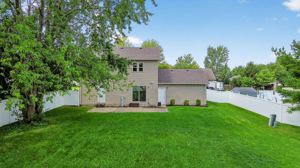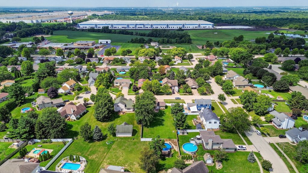 Beautifully maintained 2 story home nestled on an oversized Cul-de-sac. 3-Large bedrooms & 2.5 bathrooms. From the moment you enter, you'll notice the inviting sparkling hardwood floors that carry throughout the main level. Large open concept kitchen is a true highlight, featuring 42in WHITE cabinets with soft-close doors, sleek black quartz countertops, a full suite of stainless steel appliances & an oversized island. Upstairs, rooms include all-new carpeting with plenty of natural sunlight. Updated bathrooms offer modern tile flooring, granite countertops, and spacious vanities. Retreat to the primary suite and enjoy the comfort of a jetted tub in the private bath. Fully finished basement for extra living space, complete with a lux-full bathroom including a walk-in shower, & additional closet space for storage. Main floor laundry for convenience, and a new hot water heater for peace of mind. Spacious backyard is designed for entertaining, complete with outdoor speakers and a concrete patio that's perfect for gatherings. Proximity to restaurants and route 53 making it easy to travel ~2 Blocks from School & Park~Minutes from I-55 and I-80. 2 year old ROOF.