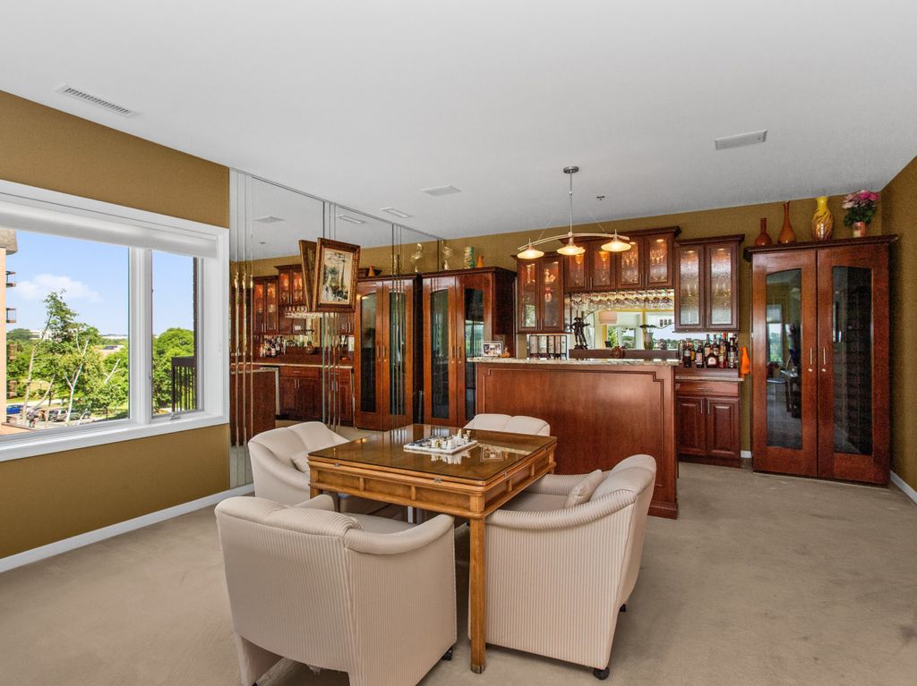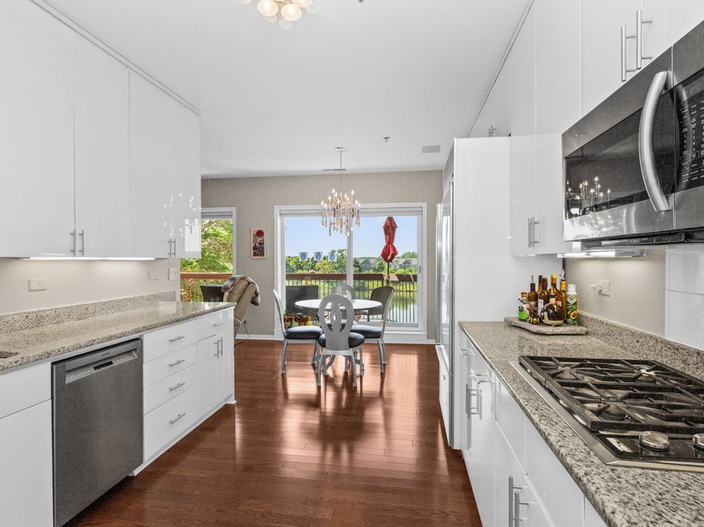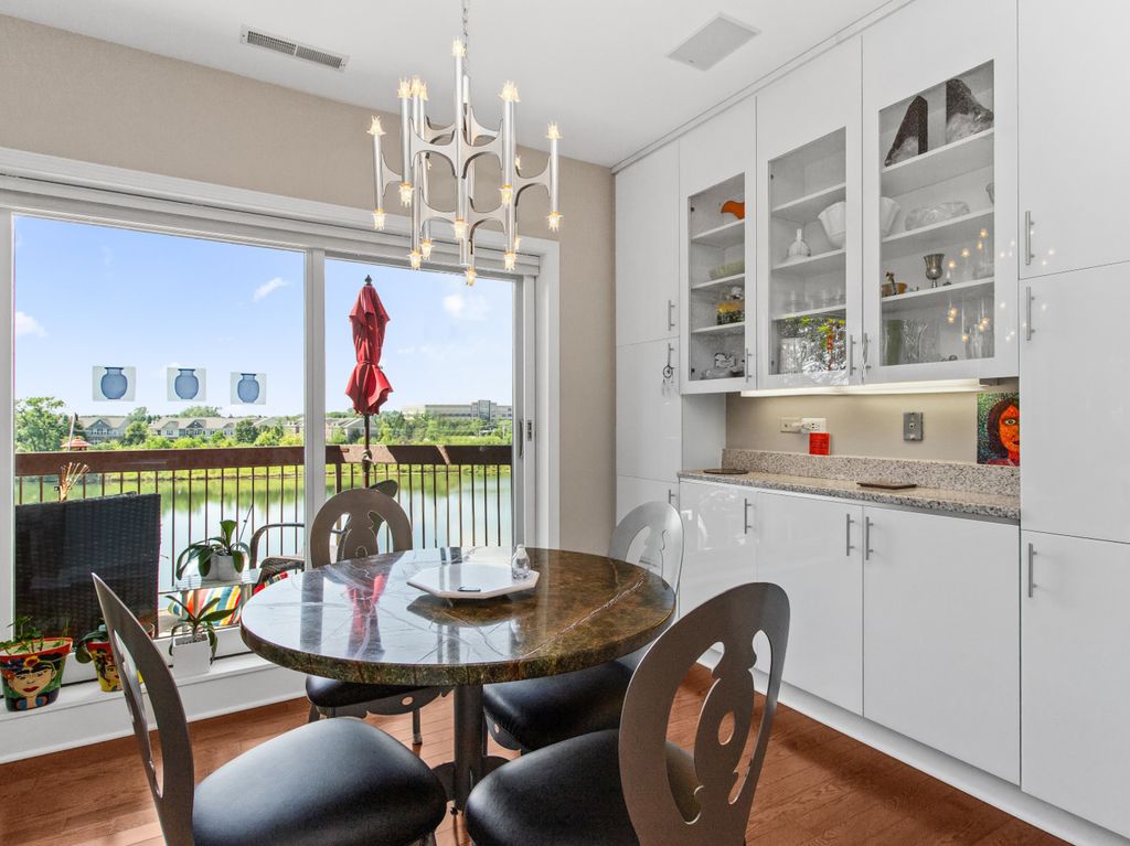 This refined 3-bedroom, 2.5-bath corner residence offers over 2,800 square feet of sophisticated living, where every room overlooks the lake and captures abundant southern light. The inviting living room, anchored by a stunning custom-built bar, is the perfect vantage point to enjoy spectacular sunsets framed by oversized windows. A gracious family room and expansive dining area provide an ideal setting for both intimate gatherings and large-scale entertaining, while a private balcony offers tranquil treetop and lake views.The chef's kitchen is masterfully appointed with Sub-Zero refrigeration, a Bosch dishwasher, Thermador double ovens, and a Wolf gas cooktop-designed to delight the most discerning culinary enthusiast. The serene primary suite includes a spa-like bath and generous closet space, while two additional bedrooms, all finished with plush carpeting, provide versatility for guests, a home office, or a den. Additional conveniences include a full-size washer and dryer, an individual HVAC system, heated garage parking, and a same-floor storage unit.Set within Rivershire's coveted gated community, residents enjoy an exceptional lifestyle complete with a sparkling outdoor pool, tennis courts, fitness center, and sauna. Located within award-winning District 103 and Stevenson High School-among the most highly regarded in the nation-this home combines luxury, comfort, and convenience,with parks, premier shopping, dining, and scenic walking paths just moments away.