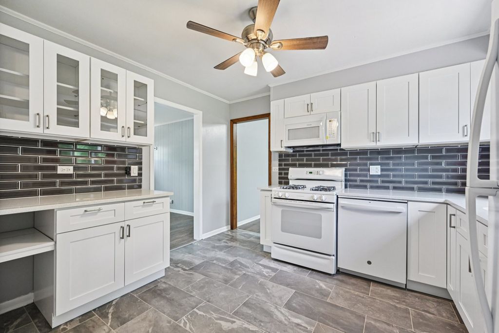 Welcome to 453 Titonka St in Park Forest! This beautifully updated 5-bedroom, 2-bathroom home offers the perfect blend of space, style, and modern upgrades. Step inside to find brand new flooring throughout and a fully renovated kitchen featuring custom cabinetry, sleek quartz countertops, a white-on-white appliance package (including dishwasher), and plenty of storage. The home boasts large bedrooms with new carpet, along with a spacious living room and a family room just off the kitchen-perfect for gatherings and everyday living. Comfort is ensured year-round with two HVAC systems and central A/C, plus high-end windows and doors for energy efficiency and peace of mind. Roof 10 years old with 50 year shingles/Windows and doors(2020). Step outside to enjoy the new stone patio in the fenced backyard, designed for barbecues, lounging, and entertaining. A washer and dryer are also included for your convenience. With its thoughtful updates and generous layout, this home is move-in ready and waiting for its next owners to enjoy for years to come!