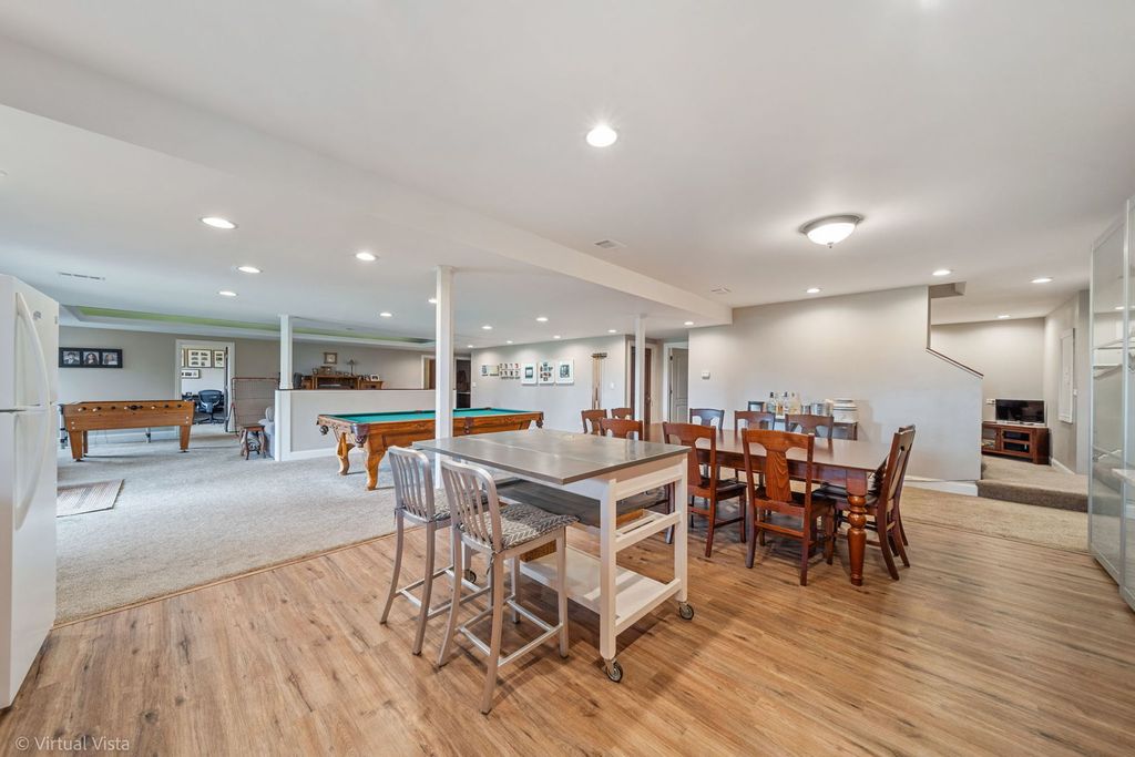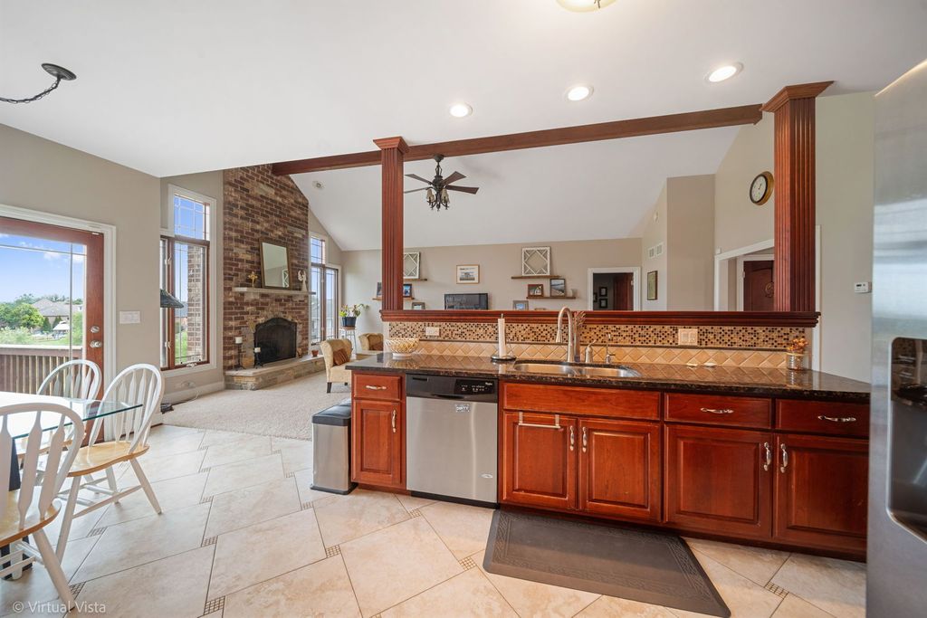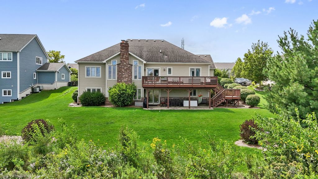 A must see home for the growing family. This lovely, updated Ranch Style home is waiting for the family that likes the open concept feel in a home. Walk out from kitchen to wood deck and main level fireplace, Cherry wood Cabinets and all appliances stay and offering Brazilian Cherry wood flooring. If extra living space and an In-law arrangement is needed look no further. 4 bedrooms on main level and 2 extra bedrooms in a beautifully professionally finished basement with second kitchen with appliances, living room recreation area with 2nd fireplace and dining area, office, ample storage areas, furnace room with zone heating and cooling, tankless water heater, humidifier, radon indicator for peace of mind. Presently 2.5 bathrooms half bath in lower level has shower plumbing in that bathroom through the second door. Walk out to a covered concrete patio overlooking a serene back yard. Oversized attached 3.5 car garage. Total square footage with finished basement is approximately 3320 sq ft. Truly a must see home. This home is not a drive by!