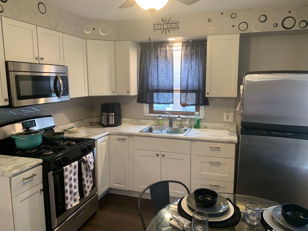 Come take a look at this spacious 2 bedroom, 1 bath ranch style home. Home has been nicely updated w/ beautiful hardwood flooring throughout and a oversized living room w/ recess lighting. The kitchen has been modernized with new cabinetry, backsplash, stainless steel appliance package and duel breakfast bar for additional seating. There are two generous size bedrooms, an updated bath w/ beautiful ceramic tile and modern fixtures. There is a nice size laundry room w/ plenty of storage space. Head outside to a fully fenced in yard w/ detached 2 car garage. This is the perfect starter home for a small family or the perfect income property for the savvy investor. Close to schools, expressway, shopping, etc. Schedule an appointment to see your new home today! SOLD AS-IS
