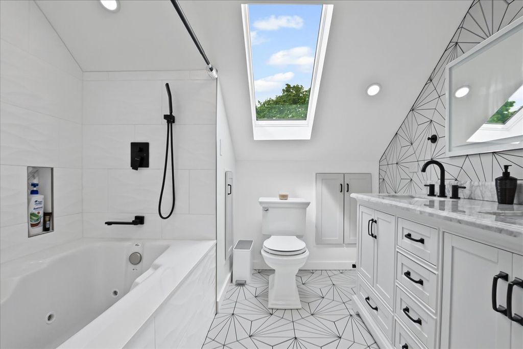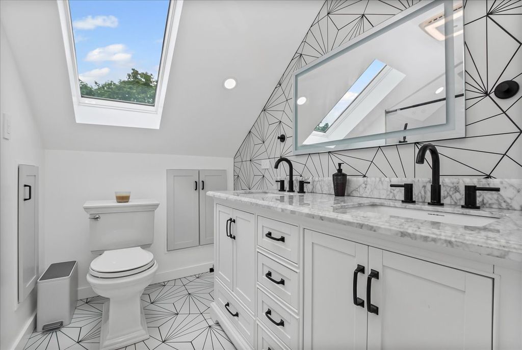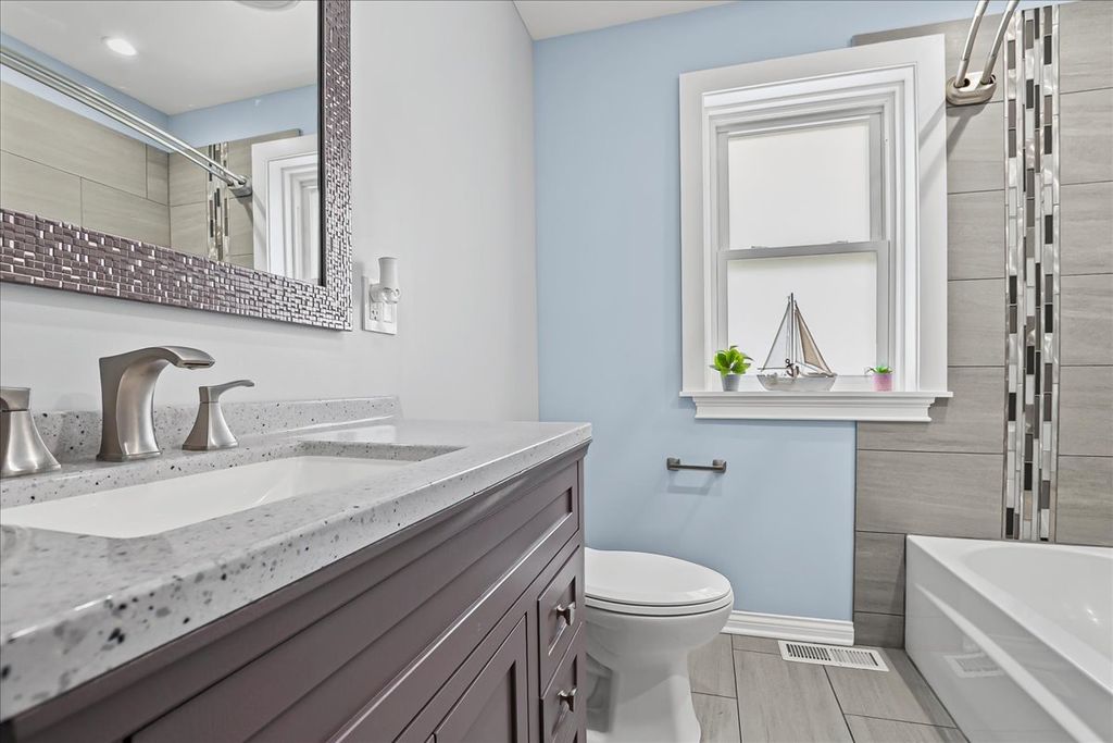 One of the finest bungalows in Berwyn. This solid brick corner home has been completely remodeled from top to bottom, offering a perfect blend of timeless charm and modern luxury. Step inside to an open and spacious floor plan featuring hardwood floors throughout the main level, a bright living and dining area, and a versatile office space. The updated kitchen is a true showstopper with granite countertops, subway tile backsplash, a large island, walk-in pantry, and stainless steel appliances. The main floor also includes two bedrooms and a full bath, designed with both style and functionality in mind. The primary suite upstairs is a private retreat, complete with its own living room, massive walk-in closet, and spa-like bathroom with a double vanity and skylight. The fully finished basement is an entertainer's dream with a huge recreation area, half bath, full laundry, and a dedicated exercise room. Outside, enjoy your private oasis featuring a six-foot privacy fence, stamped concrete patio, and a beautiful gazebo, perfect for outdoor gatherings. Additional upgrades include 200-amp electric service, newer plumbing, newer windows, and a dual-zoned HVAC system. Truly one of a kind, this bungalow is a must-see.