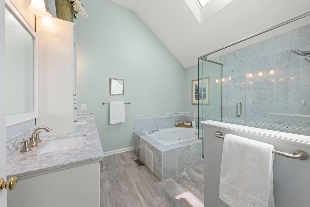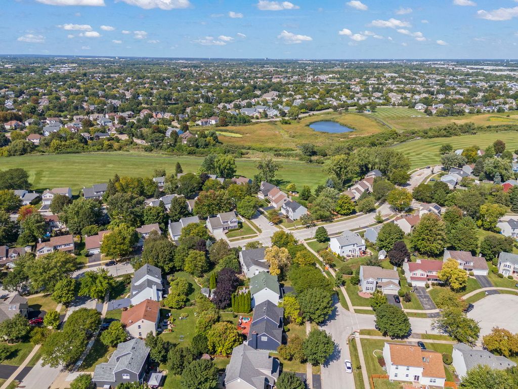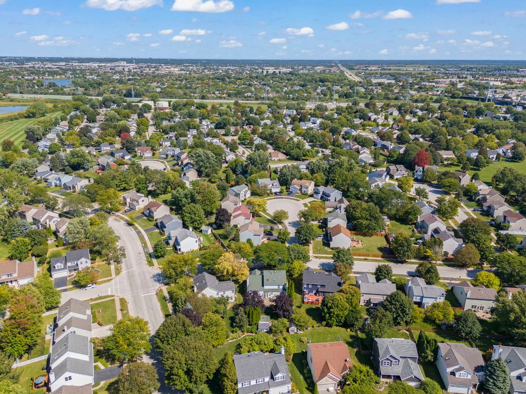 The 'Crown Jewel' of Pine Meadows! Curb appeal galore! Welcoming front porch, hardwood floors throughout the 1st floor which have been recently refinished with a natural stain/matte finish. Kitchen is spacious with ample cabinets, solid surface counter tops, newer stainless steel appliances & double SS sinks. Kitchen opens to family room with wood burning/gas starter fireplace and large bay window. Atrium door off the eat in kitchen for easy entertaining and grilling. Powder room off main hallway has granite counter & new vanity and was remodeled in 2021. Enter the Primary bedroom through double doors and you will see volume ceilings, a lighted ceiling fan & full ensuite that has been remodeled with marble counter top, separate over-sized shower and dual sinks, vaulted ceiling, jacuzzi tub & skylight for extra natural light! The primary closet has been expanded and is a 'wow'. The other 3 bedrooms are spacious with neutral carpet, lighted ceiling fans and ample closet space. The hallway is extra wide with a generous sized linen closet. The main bathroom has been remodeled with a marble counter top, tile floor & shower and new dual sink vanity. The basement features a large recreation room, custom made solid oak bar, storage room, laundry room, & a 'flex' room currently being used as an exercise room. The 'flex' room could easily be a 5th bedroom, office, or a craft room. The yard is a gardeners dream with many flowering perennial plants/flowers, bushes, and trees! There is a She/He shed for potting and storage needs. Updates include: HVAC 2022, Hot water heater 2021, Roof 2011. The neighborhood has its own Elementary School & playground down the street. Eola Community & Fitness Center, library, Waubonsie High School, Fox Valley Mall, walking & bike paths & Rt. 59 train station are all minutes away! Highly desirable 204 School District! This home has been well maintained and will not disappoint. Show & Sell!