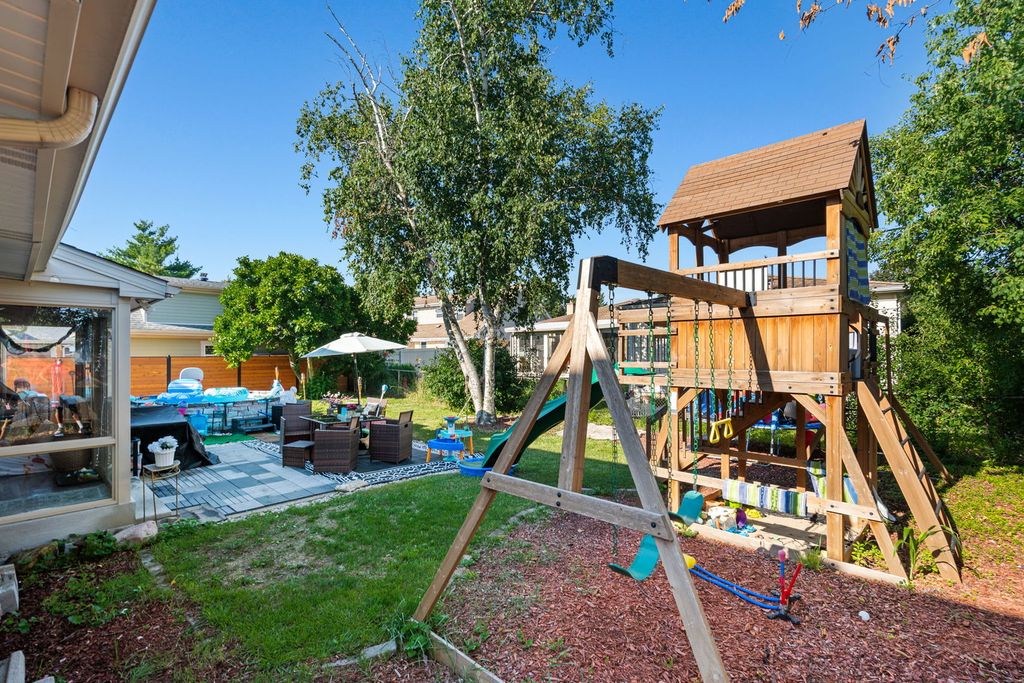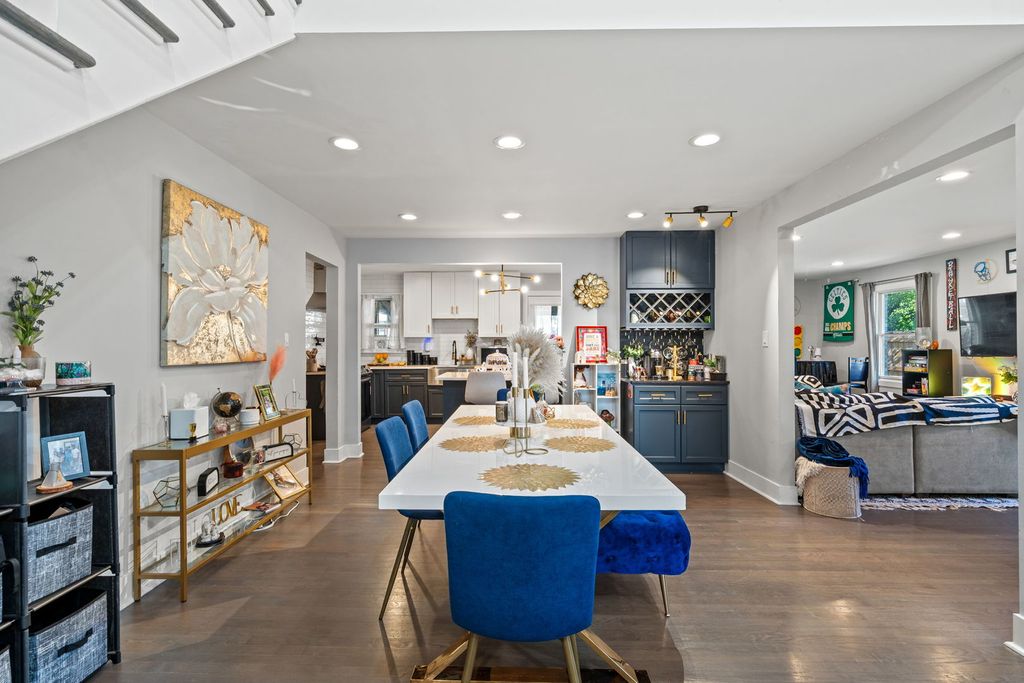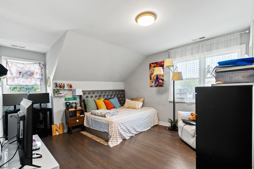 This stunning custom 2-story home has been lovingly maintained! Featuring 4 bedrooms, 3 full baths, and a 2-car attached garage, this home boasts a spacious open floor plan with gorgeous hardwood floors and soaring ceilings throughout. The heart of the home is the chef's kitchen, complete with 42" custom cabinets, Quartz countertops, high-end stainless steel appliances, a pot filler, walk-in pantry, and a large island next to a custom coffee and wine bar-perfect for entertaining. A dual-zone fireplace warms both the living and dining areas, creating a cozy yet sophisticated atmosphere. The first floor includes a versatile bedroom and full bath, while the second floor offers a custom laundry room and three additional bedrooms, including a spacious primary suite with a luxurious en-suite bath. New back porch (2023), New high-efficiency hot water heater (2024) Located close to parks, dining, top-rated schools, and major highways-this home combines comfort, style, and convenience. An excellent investment opportunity with furnishings available! Just 15 minutes from O'Hare International Airport and only a 10-minute walk to the train station with direct access to downtown Chicago in about 30 minutes-makes it highly desirable. There is also the option to purchase the home fully furnished, providing added value for those looking for a turnkey investment property.