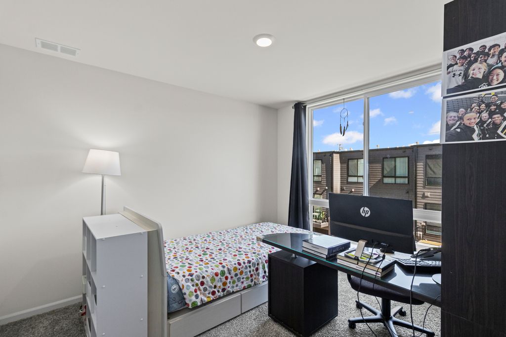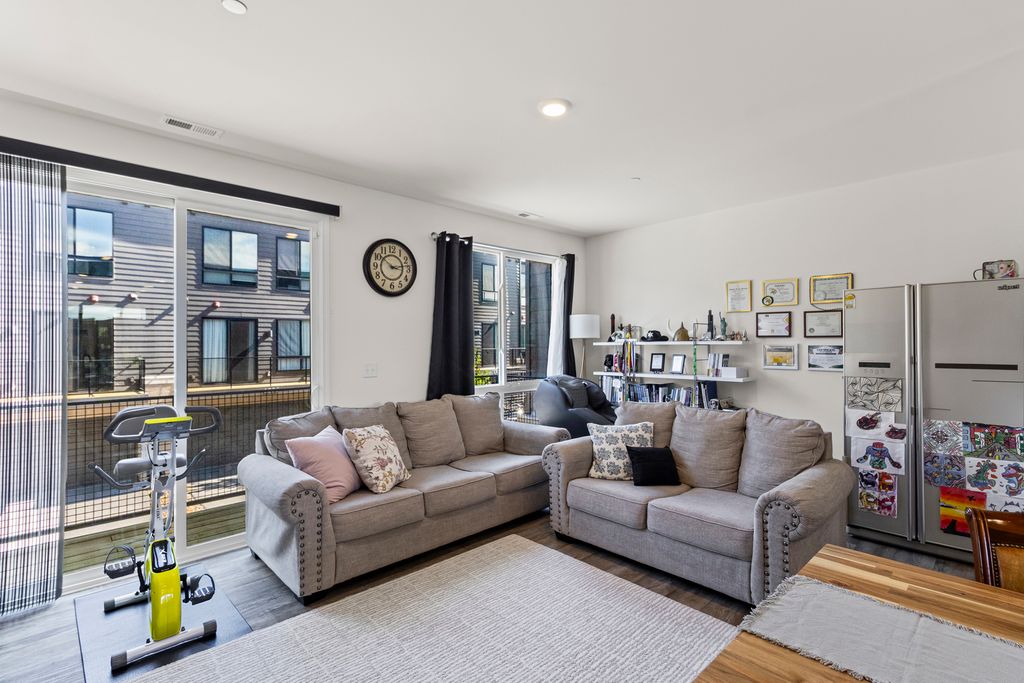 Investor-friendly townhouse with over 1,575 square feet and abundant natural light! The main level features an open-concept layout, showcasing a spacious living room that seamlessly connects to the dining area. Enjoy luxury vinyl flooring and access to an oversized balcony through the sliding door. The kitchen is a chef's dream, complete with white shaker cabinets, quartz countertops, and stainless steel appliances. On the upper level, you'll find two generously sized bedrooms. The primary bedroom includes a private bathroom and a walk-in closet. There's also a versatile loft space ideal for a home office or extra lounge area, along with convenient second-floor laundry. The lower level offers a bonus room for storage, an office, or additional entertainment space. This home is currently leased until May 2026!