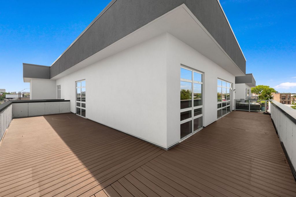 Beautiful spacious Penthouse unit with an immense spectacular private 900 sq.ft terrace that has expansive city views. Perfect space for outdoor entertaining and extra living space. Floor to ceiling windows make the space super bright and airy. Outdoor space has been upgraded with Trex decking. This unit has also been recently painted, hardwood flooring added in both bedrooms,and custom closets. Large kitchen has updated quartzite counters, backsplash and cabinet fronts. Updated master bath has a new double sink vanity and new lighting. Convenient to public transportation, shopping and all that the City has to offer.