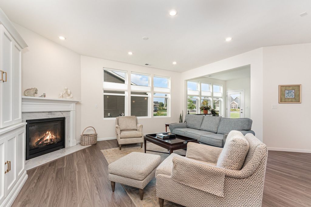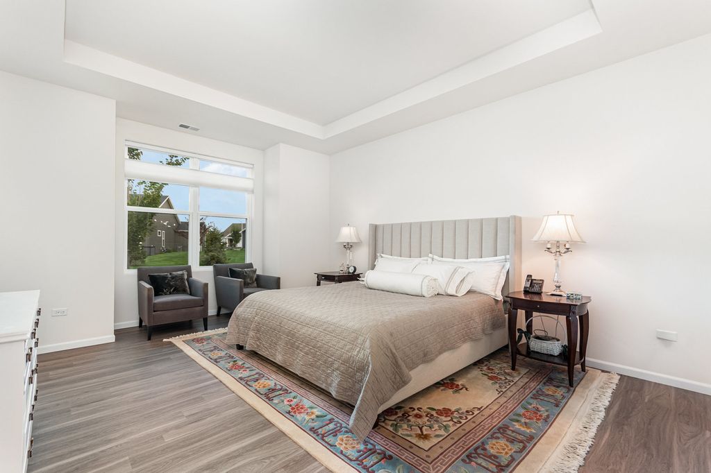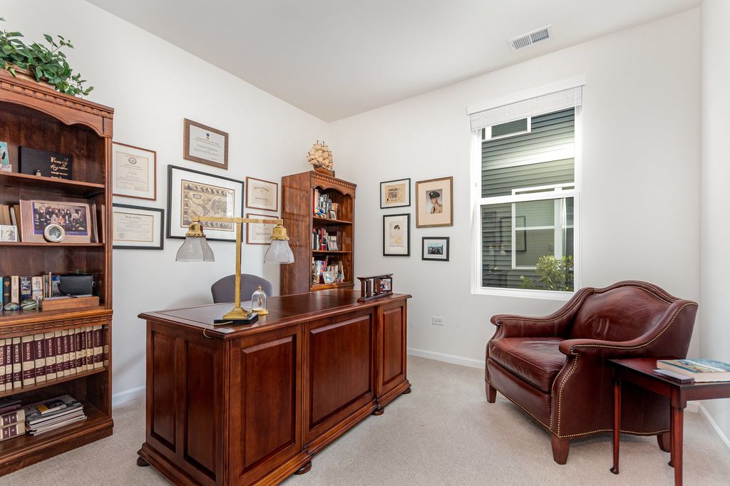 Stunning and immaculate 3-years young, 3-bedroom 2-bath home available in the highly sought-after 55 and over community of Liberty Green. Ascend Model with numerous upgrades! 2200 square feet with maple cabinets, granite countertops, comfort height bathroom vanities, office, ceramic tile, enclosed sunroom, high ceilings, large pantry, sprinkler system and so much more! The photos say it all! Monthly HOA fees include landscaping and lawn maintenance, snow removal, and a social membership to Bolingbrook Country Club which includes exercise facilities and discounts to Club Restaurants and Golf. Comfort, style and relaxed living await!