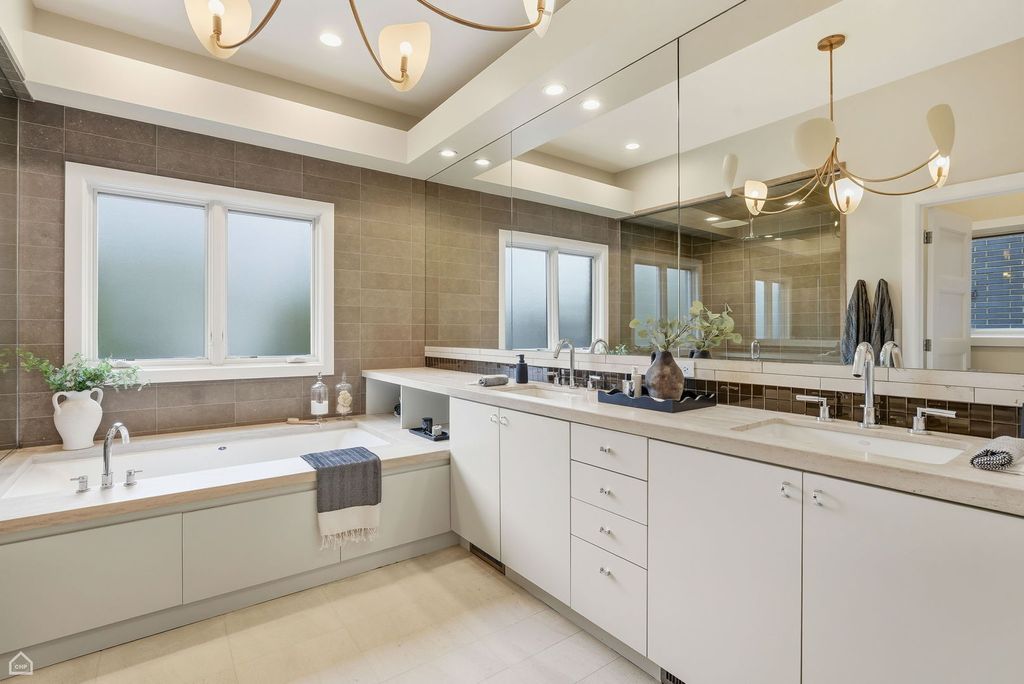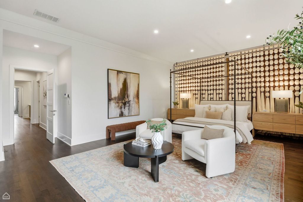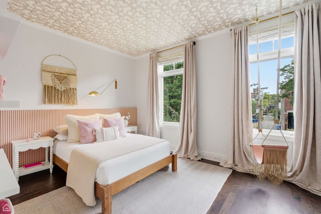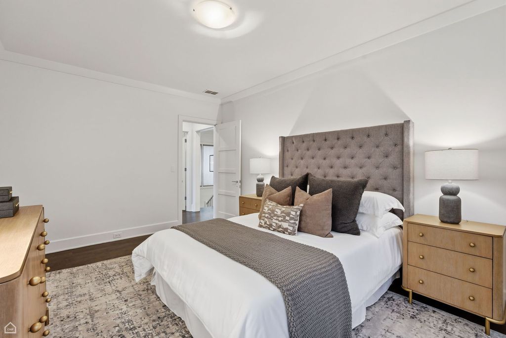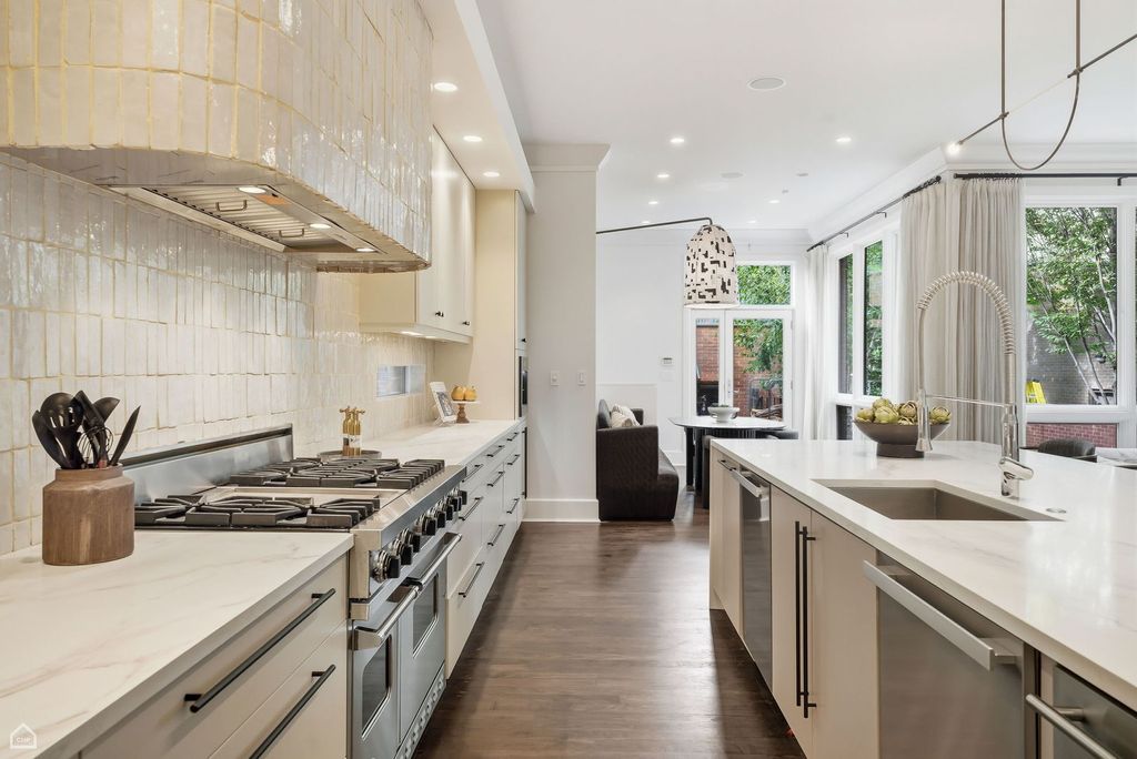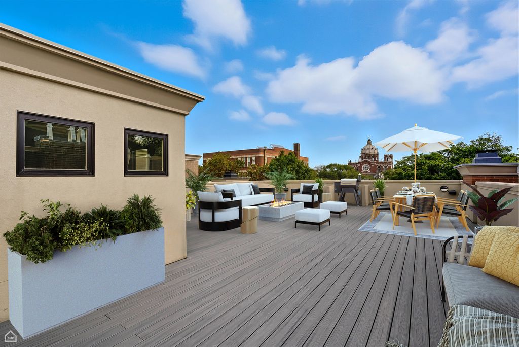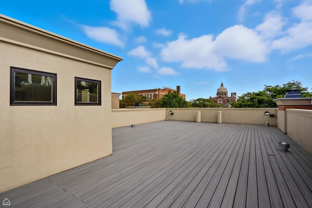 Situated on a rare 37.5-foot-wide lot, 1838 N. Wolcott Ave. is an unparalleled 6 Bed 6.1 Bath Bucktown stunner with 4 Bedrooms on the second level. This exceptional custom home seamlessly combines sophisticated design, modern functionality, and remarkable craftsmanship. Within this Environs-built all-brick property, featuring comprehensive updates by Set Setting Studio, the space has been carefully curated at every turn to balance comfort with dramatic details and architectural flourishes. Enter the spacious foyer and you instantly appreciate a generous width that allows for a range of design possibilities. Next you are led to a dramatic two-story living and dining space, flooded with natural light and showcased by custom wall paneling and architectural volume. The open floor plan extends gracefully into a visually impressive kitchen and family room designed for everyday living. The chef's kitchen features an oversized island, new quartz countertops, a Moroccan-inspired tile backsplash, and custom hood, along with a suite of Sub-Zero, Miele, and Wolf appliances. Anchoring the breakfast area is a built-in banquette that invites cozy meals overlooking a professionally landscaped and designed backyard garden viewed through oversized floor-to-ceiling windows. The second-floor primary bedroom suite is a private sanctuary that abounds with smart design details. Two custom walk-in closets provide an excess of storage space. A luxurious spa bath features a built-in tub, oversized steam shower, and elegant touches throughout. Three additional ensuite bedrooms share the same level. Each is thoughtfully designed and connected by a striking open walkway that overlooks the dramatic living space on the main level below. A laundry room is provided for convenience on this level. Upstairs, a top-floor bar area opens to a spectacular 45 X 30 rooftop deck with skyline views, which along with a very comfortable garage-roof deck and the expansive backyard garden provides a wealth of private outdoor space. Descend to the lower level to appreciate heated floors, two guest suites (one of which is ensuite), a large gym, and a giant recreation room with wet bar perfect for entertaining, watching a movie, or relaxing. Two full bathrooms, a large second laundry room, ample storage, and a wine cellar round out this level. Another of the home's singular attributes is its enclosed breezeway, which connects directly to the attached garage - a prized Chicago rarity that enhances convenience year-round. Located just steps from the well-maintained "606" trail, across from the Drummond School, and surrounded by Bucktown's best restaurants, boutiques, and parks, with easy access to public transportation and expressway, this home is truly an exceptional opportunity to own one of the premier neighborhood's most distinctive extra-wide homes.