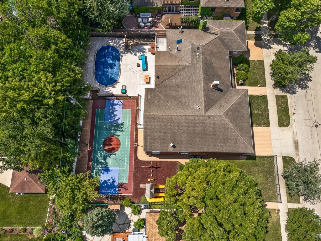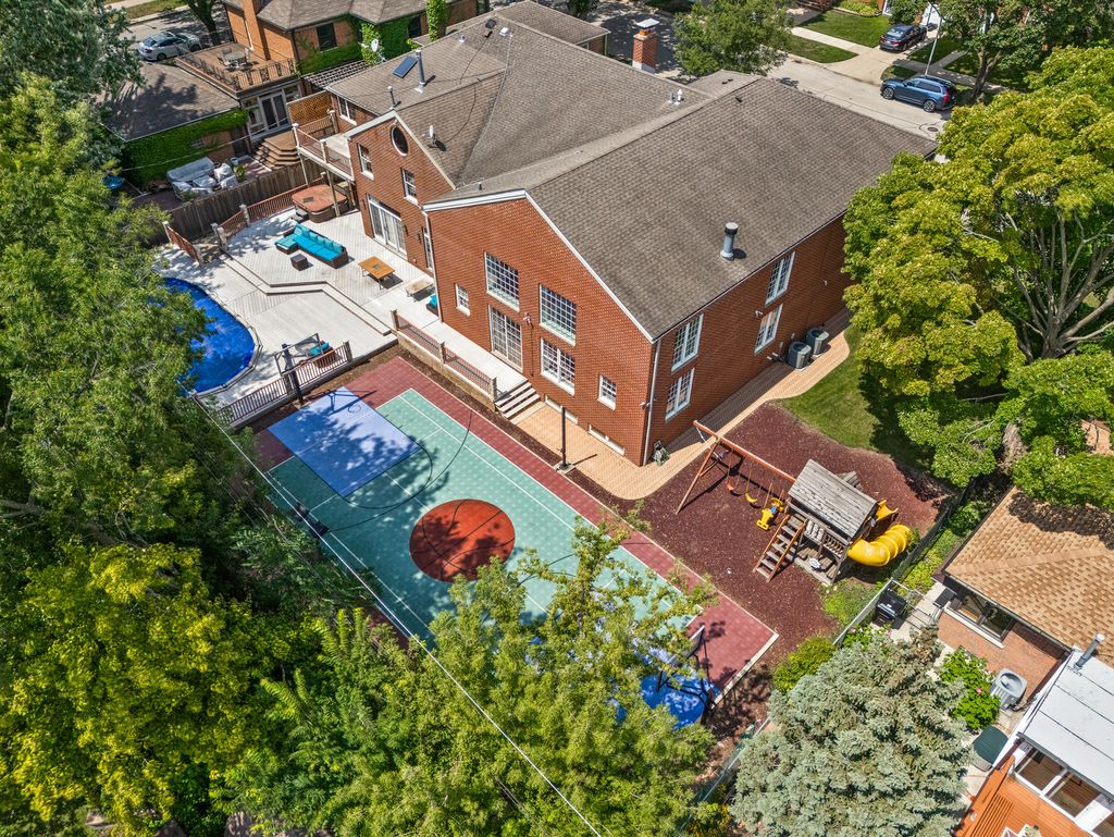 WELCOME TO THE RASCHER MANSION. Situated in the highly sought-after northwest corner of Lincoln Square in Budlong Woods, this home is the epitome of chic urban living-a captivating destination for those in search of a true standout residence. Set on an expansive 120' x 125' lot (no alley gives home added 10' in depth) and offering approximately 12,000 sq ft of luxurious living space, the mansion effortlessly blends grandeur, comfort, and sophisticated design. As you enter, you're greeted by two distinct living areas. One features soaring 18-foot ceilings, a European-crafted floor-to-ceiling fireplace mantle, and a custom wet bar-creating a dramatic gathering space. Adjacent, large south-facing windows flood the second living room with natural light and frame sweeping views of the backyard, with effortless access to a deck that leads to an inviting in-ground pool, a multi-use court, and a full side yard. The heart of the home is a chef's dream: a vast, open kitchen flows seamlessly into the dining area, anchored by an oversized island with seating for ten, abundant cabinetry, premium appliances, and a dedicated beverage center. Just off the main floor is a sophisticated home office complete with a cozy sitting area and a full bath-designed for both productivity and privacy. Graceful staircases ascend to the second level-and descend to the lower level-creating a sense of connection across all floors. On the upper level, six spacious bedrooms are arranged around four full bathrooms, three of which are en suite. The lavish primary suite is a private retreat unto itself, featuring a sitting room, a private office, a stately bedroom, a marble-clad bath, its own balcony, and a dedicated laundry area. A secondary laundry hook-up in one of the bedrooms adds exceptional convenience.The lower level is built for entertainment and recreation. Here, you'll find a two-lane bowling alley (yes, really), a full theater room, a fitness center complete with a third laundry hook-up, and an expansive family room-ideal for leisure, exercise, or hosting events. Stepping outside, the fun continues. Beyond the deck lies a below-ground pool with a hot tub nestled into the landscape. The adjacent multi-sport court accommodates basketball, tennis, pickleball-or even a child's tricycle-while a generously sized playset invites endless imaginative play. A four-car garage, beautiful pavers, and thoughtful landscaping complete the outdoor tableau. Beyond the property's gates, the neighborhood charms persist. Just steps away are the serene walking trails of Legion Park-affectionately dubbed "Bicycle Paradise"-the scenic riverwalk, lush parks, and a vibrant Nature Center. Lincoln Square's best restaurants and Andersonville's boutiques are minutes away, offering cultural depth without the hustle of congestion. This is more than simply a home-it's a rare urban refuge where luxury, leisure, and lifestyle converge. Welcome to your own private oasis in the city.