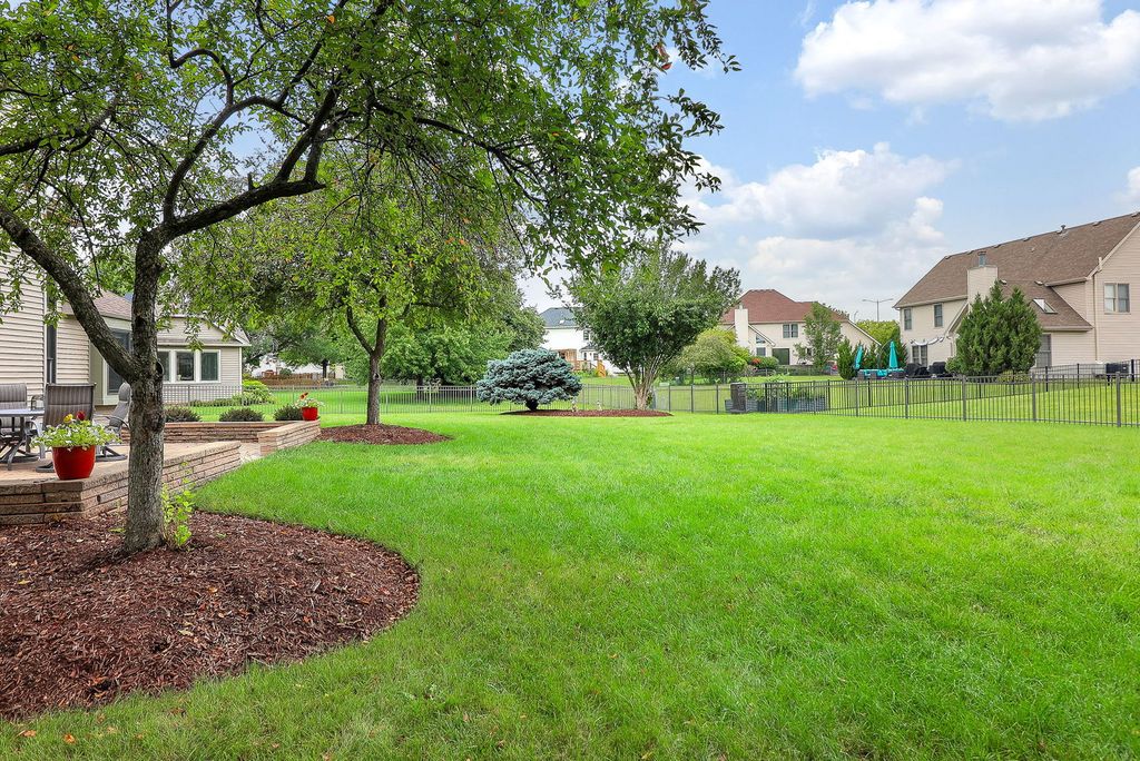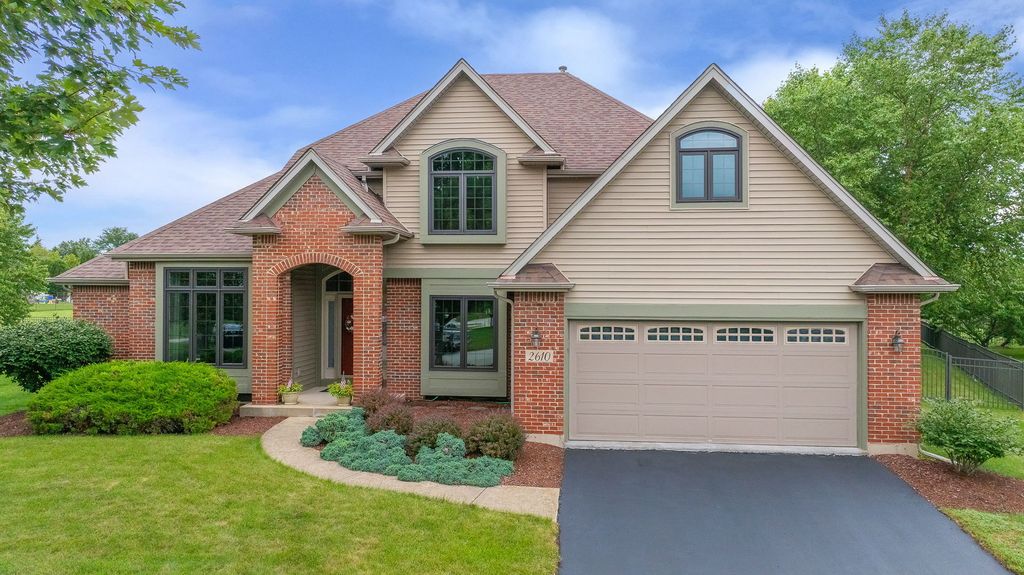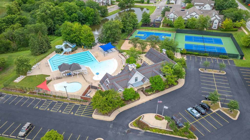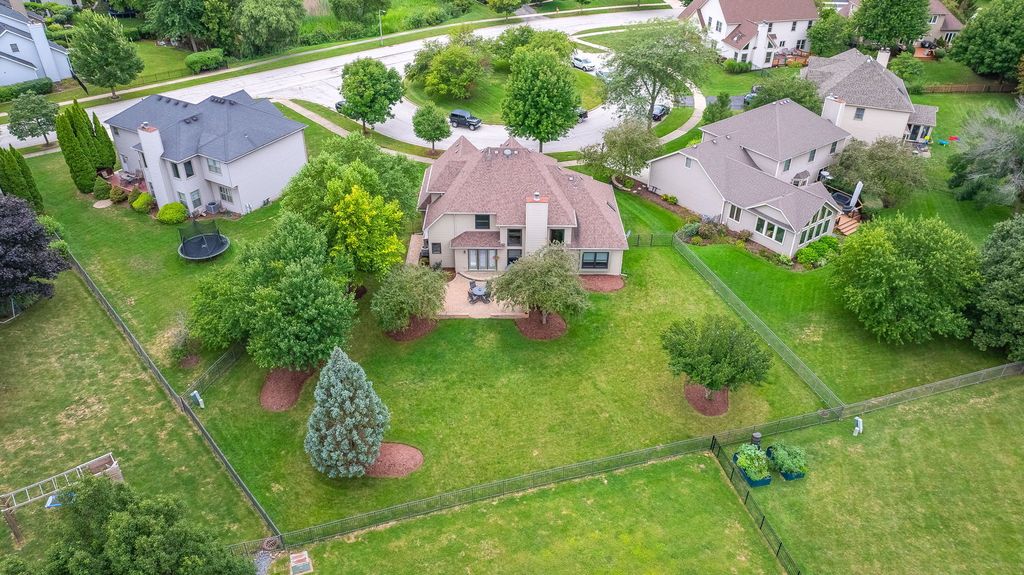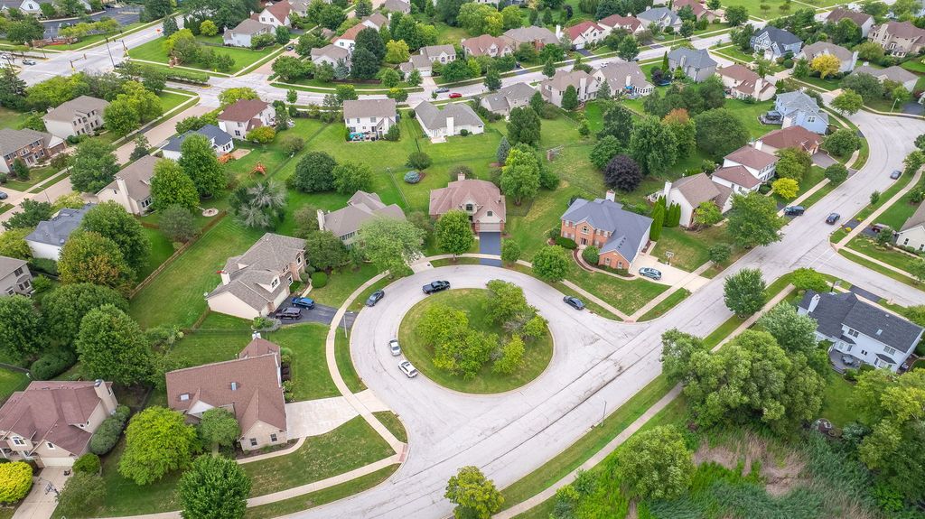 Welcome to this lovingly cared for home located on a quiet cul-de-sac within the incredible pool and clubhouse community of Oakhurst North. Step into the 2-story foyer and you'll immediately notice the abundant natural light, crown molding, and thoughtful touches throughout. The FIRST FLOOR PRIMARY SUITE boasts tray ceilings, a walk-in closet with custom organizers, and a spa-like bath with vaulted ceilings, skylight, dual sinks, soaking tub, and separate shower. A convenient first-floor powder room and laundry/mudroom add everyday functionality. The kitchen features white cabinets, stainless steel appliances, and an island that opens to the 2-story family room, highlighted by a stunning 2-story brick wood-burning fireplace with gas start. A three-paneled doorway leads to the brick paver patio overlooking the professionally landscaped, fully fenced backyard - perfect for relaxing or entertaining. A first-floor office adds flexibility for working from home. Upstairs, you'll find 3 additional bedrooms plus a tandem bonus room with vaulted ceilings. The second-floor bathroom offers dual sinks, providing plenty of space for busy mornings. The finished basement includes a kitchen area that opens to a media room wired for surround sound, as well as 2 versatile rooms ideal for a rec room, potential 5th bedroom, or playroom. There's still room for a fitness area and plenty of storage. All this sits on a third of an acre, within the boundaries of highly rated District 204 schools and close to Young Elementary and Oakhurst North Sportscore. Conveniently located near the Metra and interstate for an easy commute! Updates include all new custom Jeld-Wen windows (2017) siding & roof (2018), fridge, microwave & dishwasher (2019), all new first-floor lighting, new carpeting upstairs, and new flooring & utility sink in the laundry/mudroom.