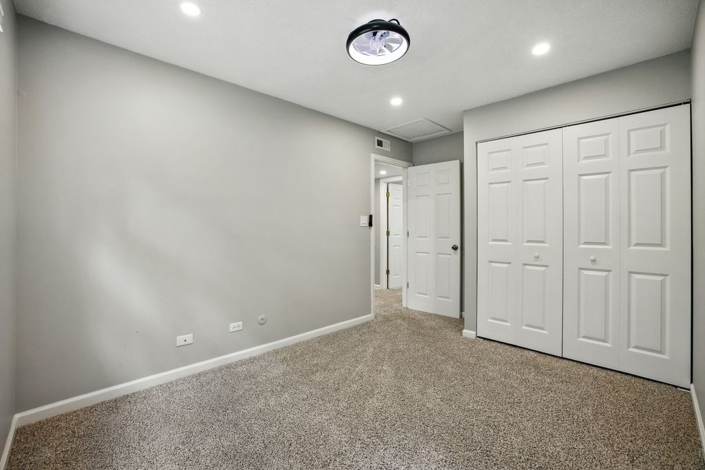 Welcome to this beautiful just remodeled 3-bedroom end unit Ranch Condo, with attached garage! Enjoy cooking in the updated kitchen elevated with elegant vein splashed quartz countertops and chic subway tile backsplash The brand new installed sophisticated cabinetry and under-cabinet dimmable lighting accents the sleek black stainless-steel appliances, over the neutral trendy flooring. The newly added dishwasher capability just installed, makes clean up a breeze. Step through the sliding glass doors off the kitchen to your patio-perfect for entertaining or relaxing outdoors. All new modern windows installed throughout for improved comfort and efficiency with an open organic feel. Just added recessed canned lighting in the large open living room and throughout the entire home, adds a warm, contemporary touch, all with dimmable features for the ambiance of your choice. All-new cordless white modern push-up blinds. Fresh paint throughout, including in the attached garage. Modern bladeless ceiling fans in the all the spacious bedrooms equipped with integrated dimmable lighting and remote controls. Spa like vibes in the bathroom with new oversized vanity, modern lighting, toilet, and spacious tub for relaxing. Another paved patio at the front door opens onto a fresh expanse of lawn, combining charm with functionality. Conveniently located close to Metra, shopping malls, dining, and schools, this home offers the ideal combination of suburban comfort and urban accessibility. Investor Friendly. Don't miss your chance to own this turnkey gem.