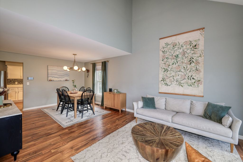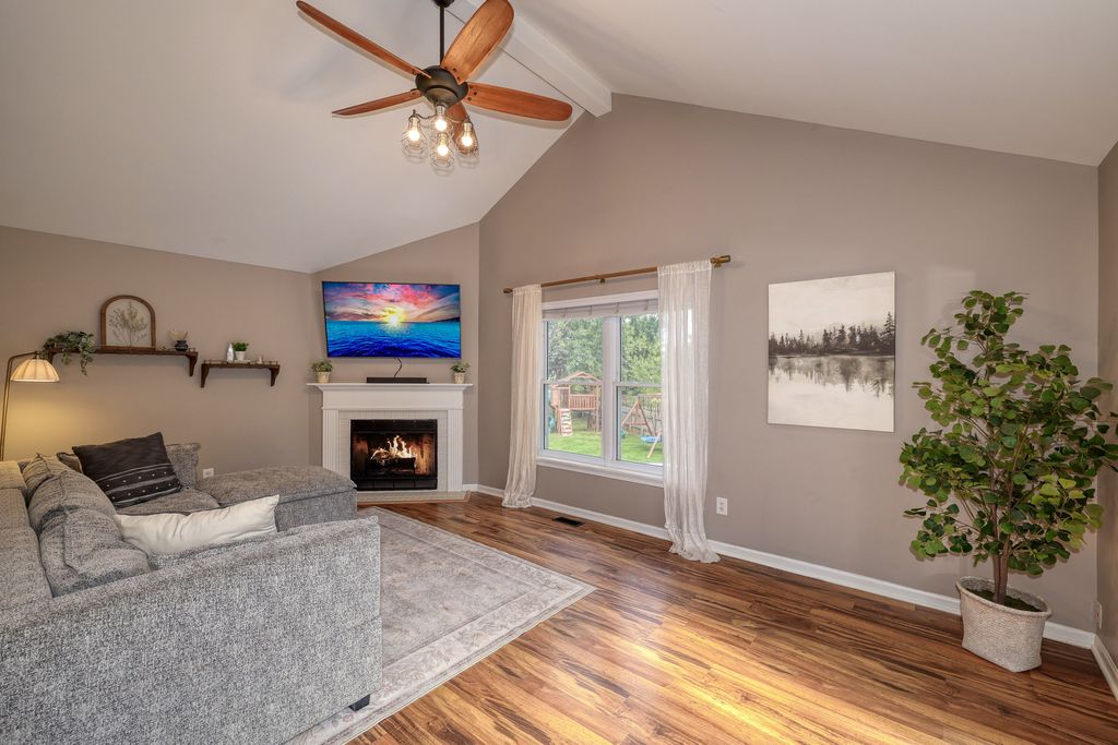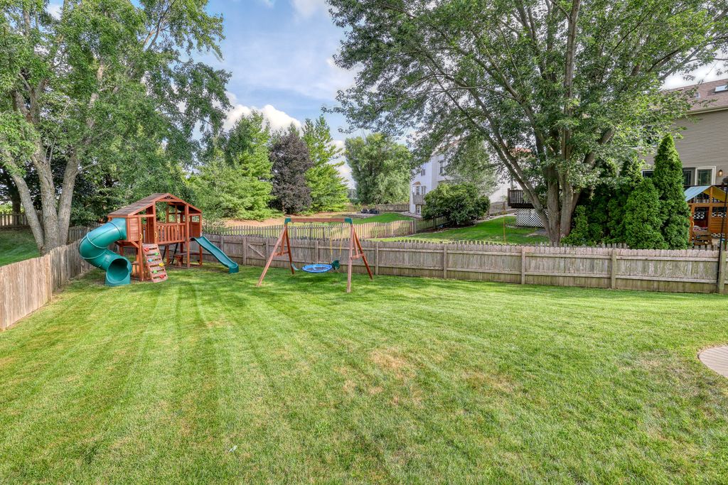 Welcome to this charming two-story home, featuring three bedrooms and 2.1 bathrooms in the sought-after Geneva East neighborhood. This residence offers an open layout with an eat-in kitchen, a comfortable family room, and flexible spaces that can serve as a dining area or home office. The kitchen has white cabinetry, quartz countertops, a glass tile backsplash, new stainless steel appliances, and modern fixtures (2019). The first floor showcases laminate wood flooring, carpeting upstairs (2019). Throughout the entire home, lighting fixtures enhance its bright and welcoming ambiance. Enjoy relaxing in the spacious family room, which features a brick fireplace that can be used as a wood-burning or gas-starting unit. Stepping through the patio doors, you'll find a charming outdoor entertainment space featuring a maintenance-free composite deck with wooden rails and a gas grill connected via a dedicated line. Additionally, the first-floor laundry/mudroom enhances the home's practicality and convenience. Upstairs, an elegant iron staircase railing guides you to three generously sized bedrooms. The master suite is a true retreat, with soaring vaulted ceilings, a walk-in closet with a charming barn door, and an updated bathroom with a soaking tub and an edge-less glass shower enclosure. The full basement, ready for personalization, includes a bathroom rough-in, an egress window, and is expanded beneath the family room, providing more space than most homes in the neighborhood. Additional highlights include a fully fenced backyard (2019) extended fence (2022), an Anderson storm door with a pull-down screen (2021), a high-efficiency HVAC system (2012), roof and siding (2022), sump pump (2018), and a tankless water heater, washer and dryer 2024. The Unilock pavers at the front patio (2021) . Paver patio and partial walkway (2024) a storage shed (2021), in-ground gutter systems (2021), and cordless window treatments (2020). Located within the highly acclaimed Geneva School District, this property is just minutes from downtown Geneva, with easy access to shopping, dining options, the Metra station, Splash Pad at Moore Park, and I-88.