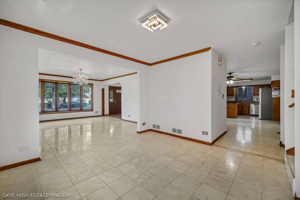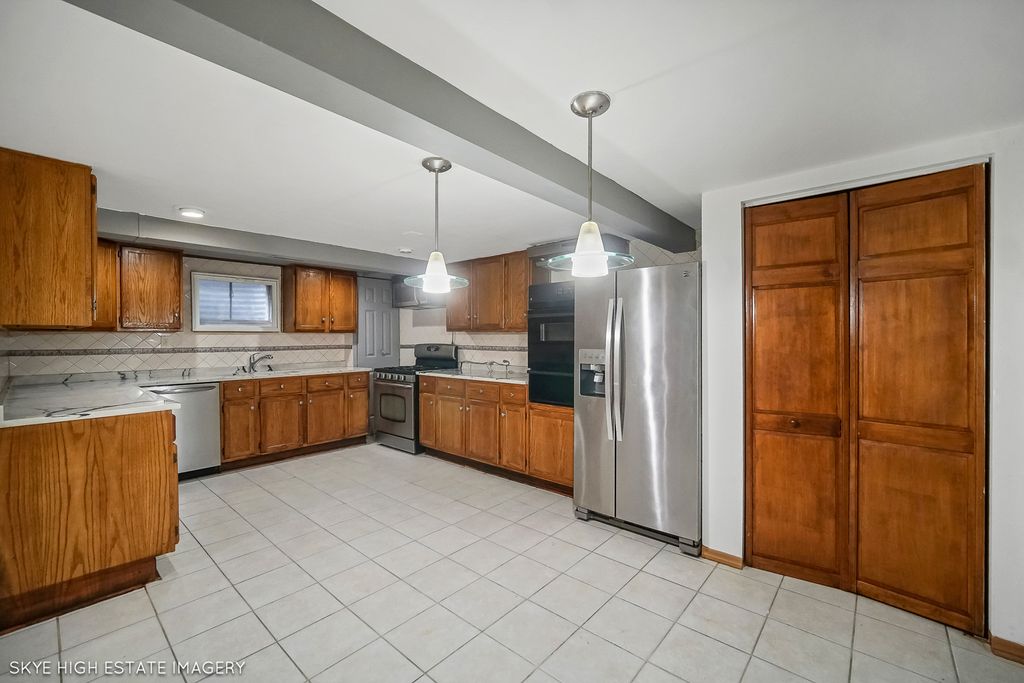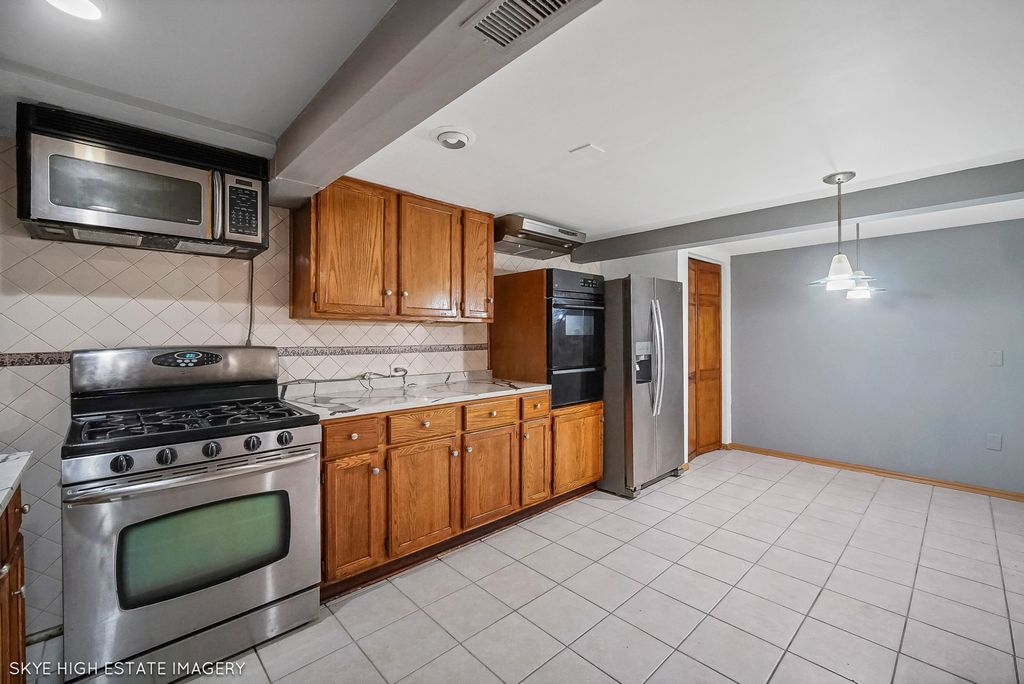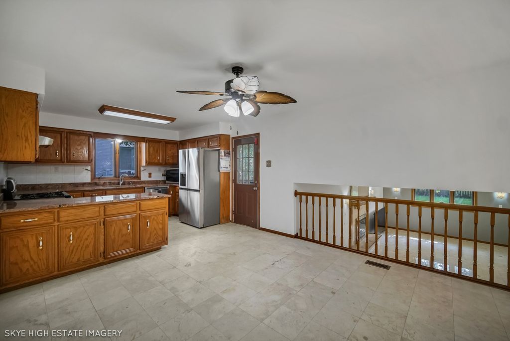 Desirable Bridgeview Falcon Ridge Subdivision offers a beautiful oversize split-level with finished sub-basement. This beauty consists of a large living room, separate formal dinning room, Massive eat-in kitchen with a breakfast room, spacious 4 bedrooms. 3.1 bathrooms, spacious family room with a fireplace, plus full finished basement with possible 5th bedroom, recreation room plus gorgeous huge kitchen with plenty oak cabinets, quartz tops & SS appliances & a full bath, great for an in-law arrangement. 2.5 attached garage, private fenced yard with 14x14 concrete patio. privacy fenced oversized yard. freshly painted throughout, updates gleaming marbel flooring throughout first floor & stairs, gleaming hardwood floors in all bedrooms, new quartz bathroom counters, subway tiled bathroom walls, new travertine walls in powder bathroom, new light fixtures, granite kitchen with back splash, new A/C 08/2025, new water heater, quartz counters in basement kitchen. 2 sets of SS appliances in both kitchens & front load washer & dryer. cozy family room with a decorative fireplace & sconces, six panel oak doors, recessed lights, this property is great for related living, walking to school