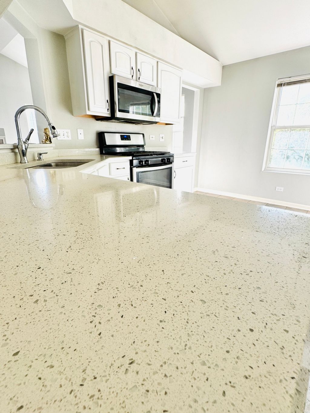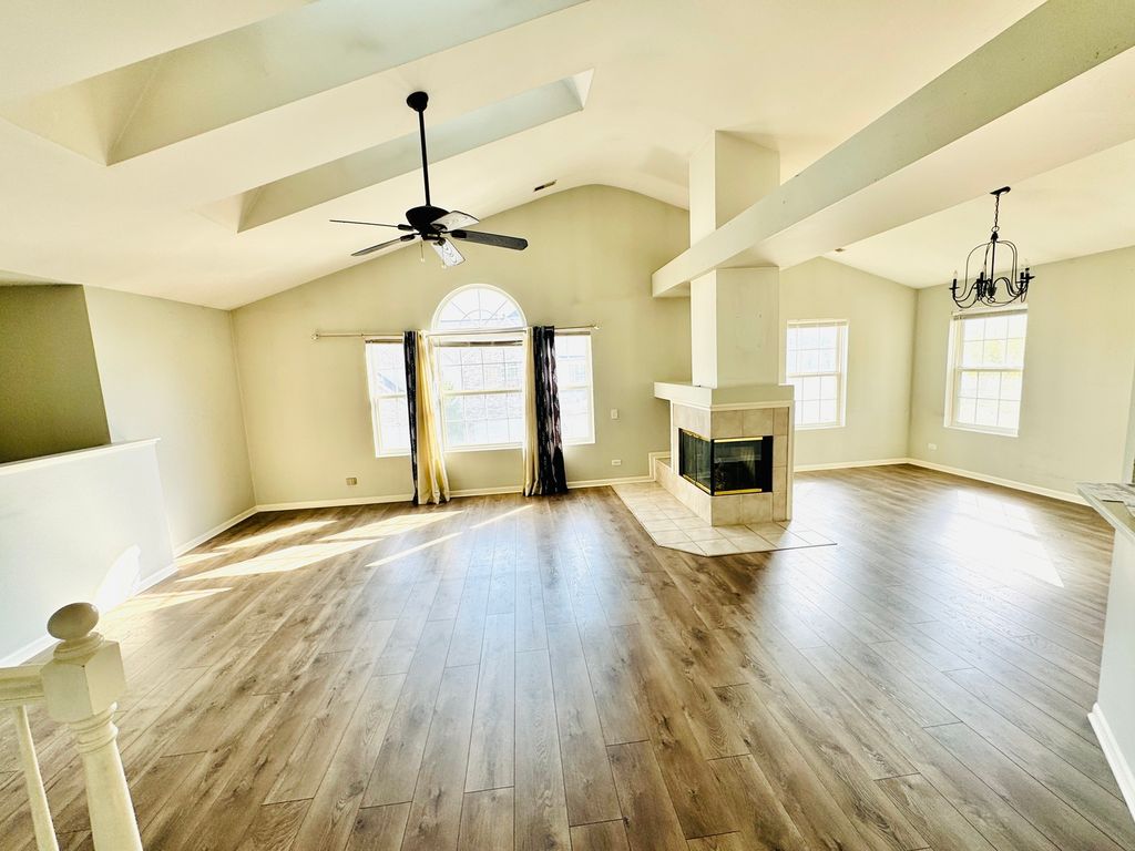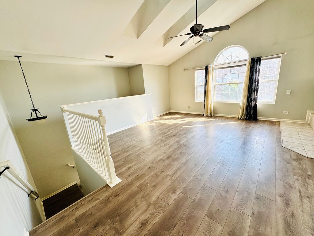 Welcome to this beautifully maintained end-unit townhome in the highly desirable Stonewater subdivision of Naperville! Featuring 3 spacious bedrooms, 2 full bathrooms, and over 1,500 sq. ft. of living space, this home combines comfort, style, and convenience. Step inside to find soaring cathedral ceilings, skylights, and a cozy double-sided fireplace that fills the open-concept living and dining areas with natural light and warmth. The bright kitchen offers ample cabinetry, a pantry, and a breakfast area perfect for casual dining. The primary suite is a true retreat with a vaulted ceiling, private balcony, walk-in closet, and ensuite bath. Two additional bedrooms and a second full bath provide plenty of space for family, guests, or a home office. Enjoy the outdoors on your private balcony or take advantage of nearby parks and walking paths. Additional highlights include an attached 2-car garage, laundry room, and low-maintenance living with HOA covering exterior care. Located within walking distance of Neuqua Valley High School, shopping, dining, and minutes from major highways, this home offers the perfect blend of suburban comfort and urban accessibility. New Carpet 2025. New Roof and skylights 2023. Laundry washer and dryer replaced 2024. Don't miss this opportunity to own a move-in ready townhome in one of Naperville's most sought-after communities!