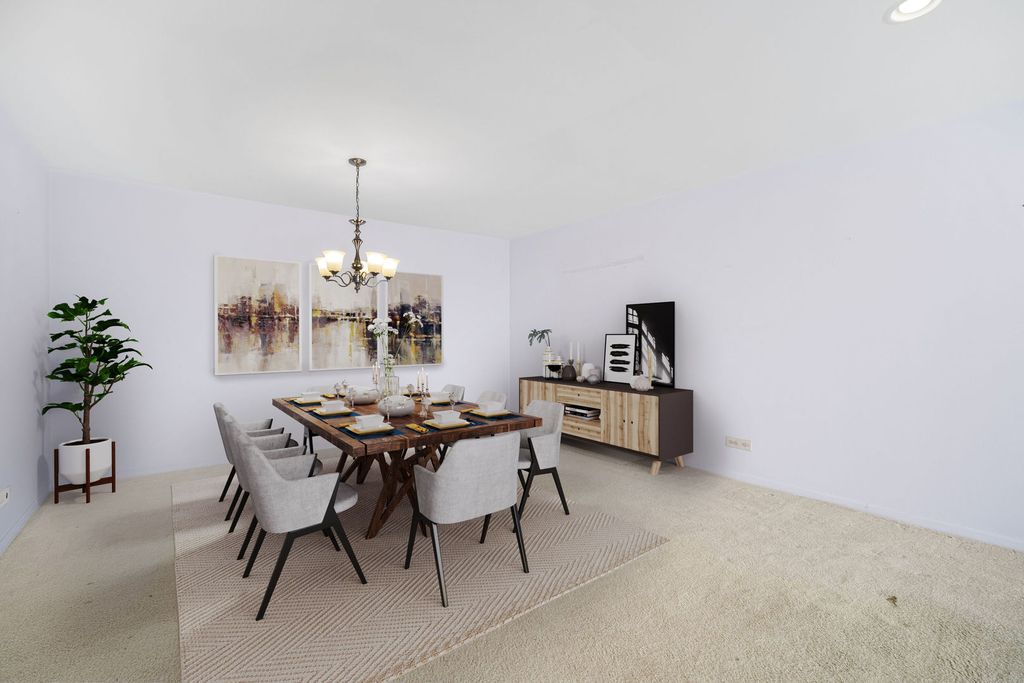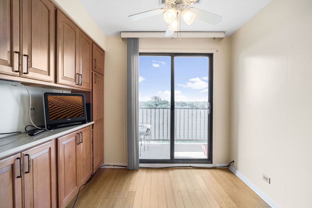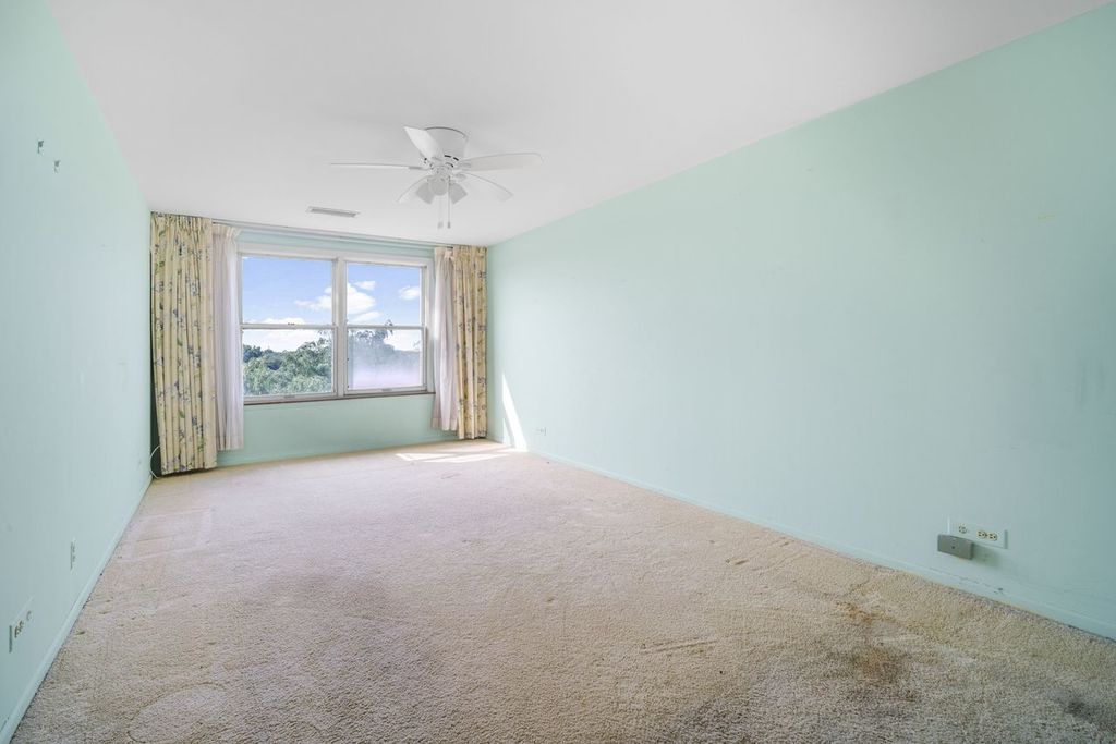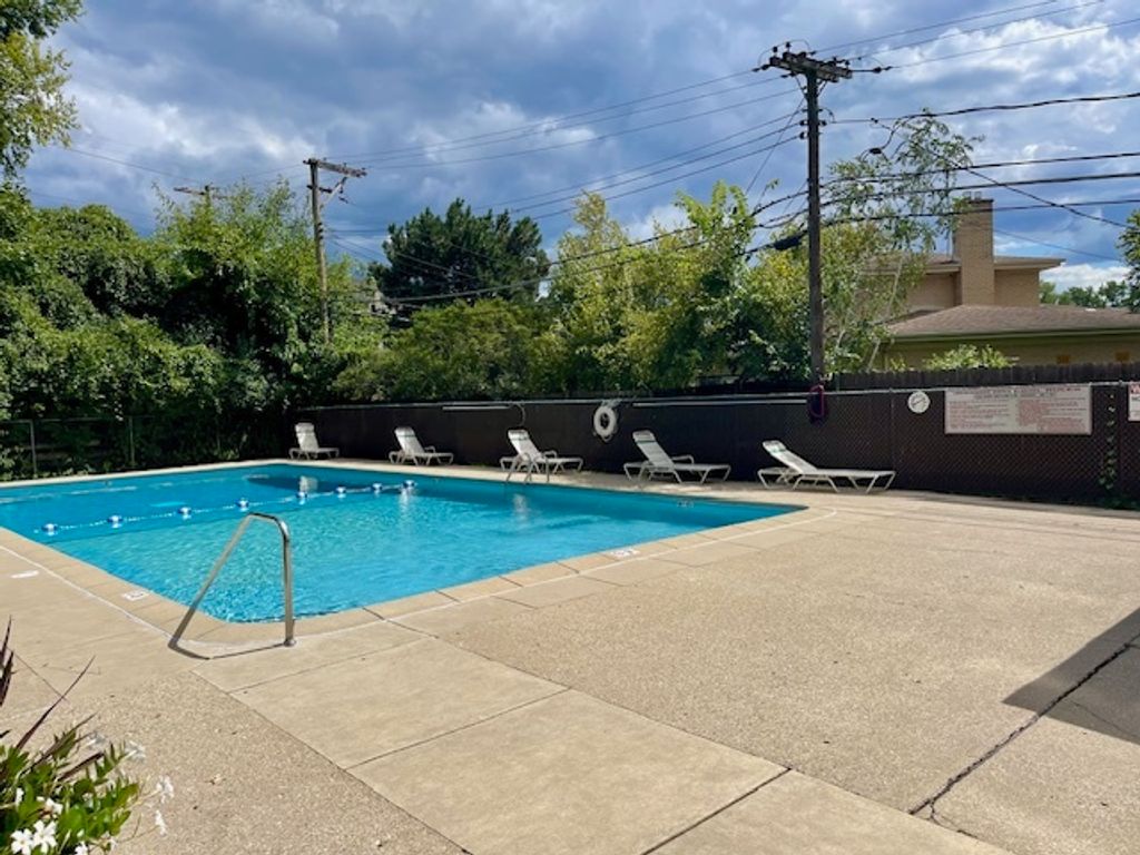 Quiet south-facing condo with city views, excellent amenities and superb location!This bright and spacious unit is located in a well-maintained, professionally managed building offering a host of desirable amenities, including an outdoor pool, party room, fitness center and secured mail room. The generous living room features recessed lighting and sliding glass doors that open to a Juliet balcony, creating a light-filled and welcoming space. The adjacent dining area flows seamlessly from the living room, making it ideal for entertaining or family gatherings. The updated eat-in kitchen boasts granite countertops, a ceramic tile backsplash, and stainless steel appliances (brand new dishwasher & microwave 10/23/25). The generous sized master bedroom suite includes a walk-in closet and en-suite bathroom. Both bedrooms and halway have been freshly painted, (all the carpeting needs replacing to your desired material). Step out onto the balcony, accessible from both the kitchen and the second bedroom, and enjoy serene treetop views and the city skyline. Both bathrooms have been tastefully updated in neuteral tones, and the unit also includes the convenience of an in-unit laundry room. Located in a prime area with easy highway access, close to the District 1860 mixed-use development, restaurants, recreation paths, Proesel Park, and much more. Heated garage space #20 in the upper east garage. Monthly assessment: $555 includes everything except electricity.