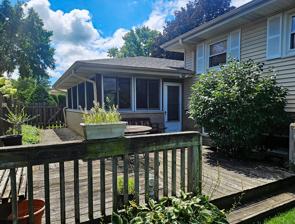 Clean Tri Level, Situated on Corner Lot. Home features Hardwood Floors, Newer Windows, Newer Roof, Newer Gutters and Newer Furnace and A/C, Two Full Baths and a Sunroom with Windows and Patio Door to Outside Deck and Patio! Large Living Room with Bow Window and Dining Room between Kitchen and Living Room. Kitchen is Large enough to have Plenty of Counter Space and Room for a Table. The Lower Level features a Spacious Family Room with Lots of Windows a Fireplace in the Corner and a Larger Utility Room with Washer and Dryer and a Full Bath. Upstairs are 3 Good Sized Bedrooms and a Full Bath. Large 2 Car Attached Garage with interior access to Lower Level, Brick Driveway and Fenced Backyard with Storage Shed. Close to Schools!