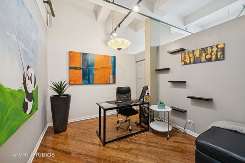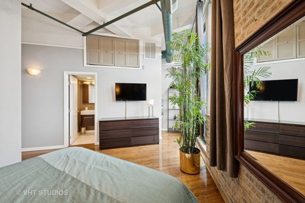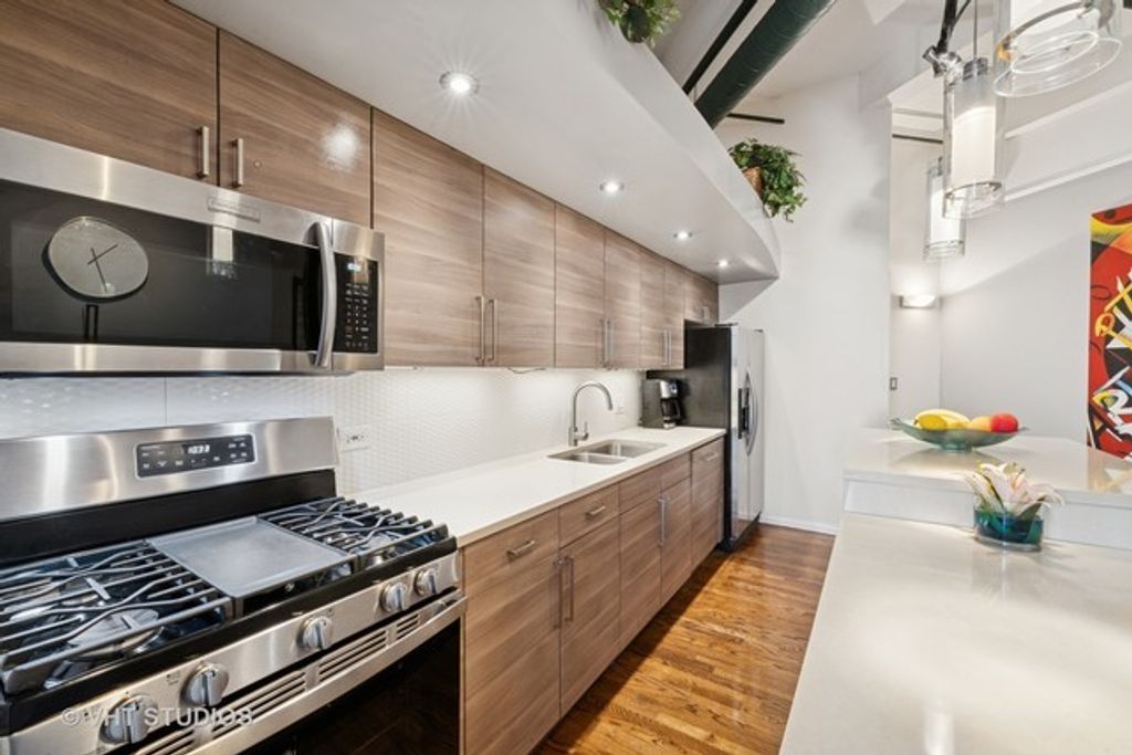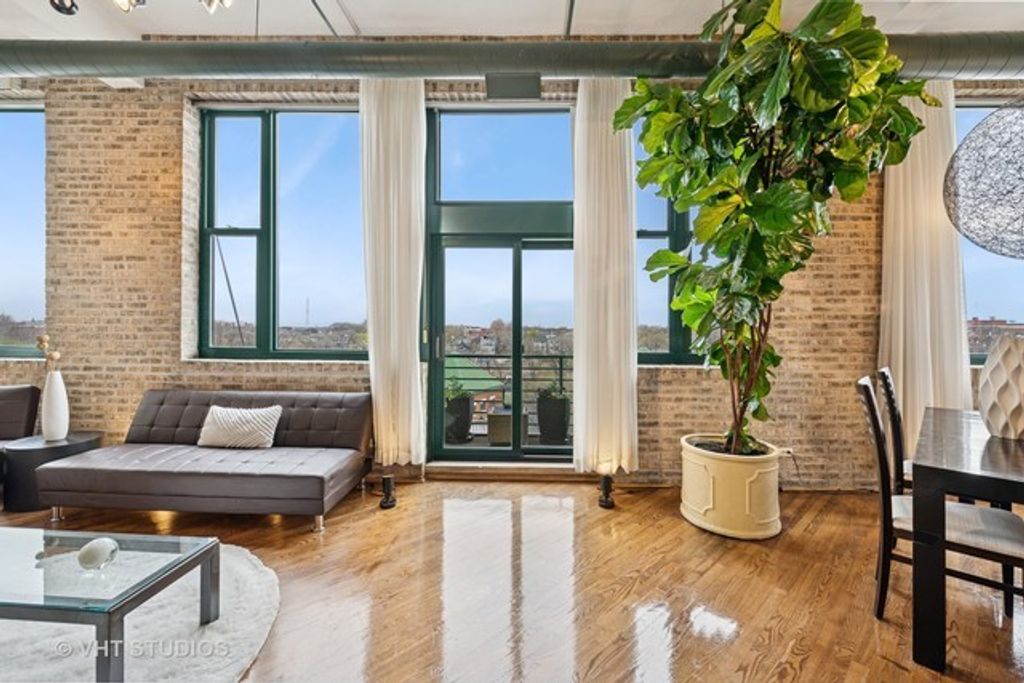 SEE MATTERPORT 3D TOUR & VIRTUAL TOUR. Largest unit in the building - 2 separate units were combined by the developer to make a spacious 1800 square foot 3 bed 2 bath penthouse unit that overlooks the Chicago River. This lofted unit has a great split open floor plan, updated kitchen, high ceilings, exposed brick, hardwood floor and huge windows throughout. There is a private deck off the living room and a 2nd deck off the primary bedroom, along with a huge common roof deck for the residents' enjoyment. This is an elevator building and comes with one heated garage parking space (#32). This gated community has launch access for kayaks into the river. Perfectly located between Logan Square, Roscoe Village and West Lakeview, this home has easy access to the highway. The Diversey bus will quickly take you to either the Blue Line West or the Brown Line east Pet friendly and much more!