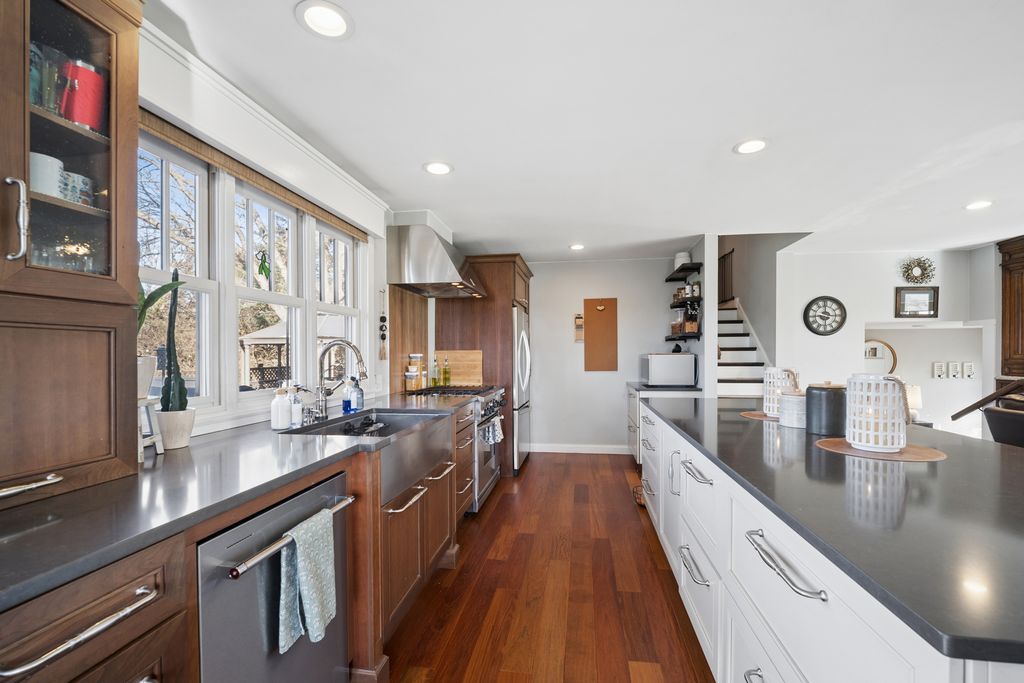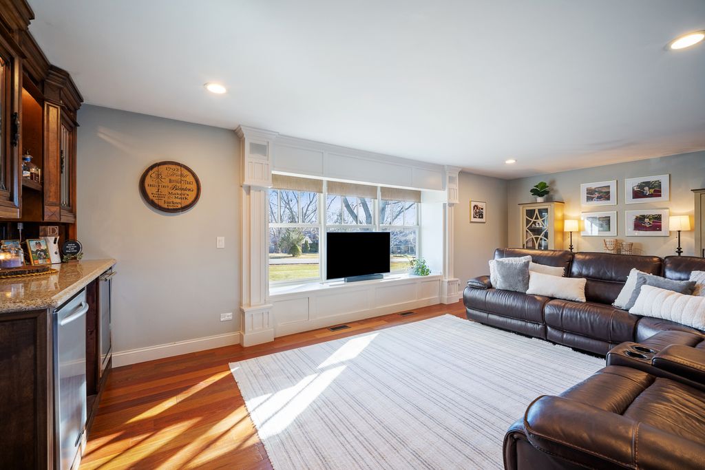 Absolutely Stunning 4 level split-level with a finished sub-basement that includes an adorable little kids play area along with an Adult bar area (with a heated floor), a homey recreation room, a full size laundry room, and a huge storage area. But let's start at the welcoming entry - from the front door or from the attached garage to a wide open hallway with a sitting bench, closet, and multiple hanging hooks. Up you go to a wide open massive living room, dining room, and totally updated, high-line kitchen with quartz countertops, Kraftmaid custom cabinets,Kitchen-Aid appliances, and a huge island overlooking that living room which features a retractable TV that disappears into a window seat, as well as a built in bar/bookcase area. The French Doors off the dining room lead to a multi-level entertaining area in the great outdoors that overlooks a fenced in portion of the plush 1 acre lot along with a cozy firepit area in the side yard and a spacious storage shed on a concrete slab. Straight ahead of that front entry leads you to a generous sized family room with a high efficiency wood burning fireplace, built-in book cases, sliding doors to that multi level outside area, and a half bath. The 3rd floor features 4 good size bedrooms and 2 full bathrooms. The primary is an ensuite. All 3 bathrooms have been remodeled. Please note the custom woodwork & window frames throughout. Some of the many improvements and updates are as follows: New in 2026-whole house fan, 2025-Hot water heater, waste water pump, & re-stain deck, 2024-washer, dryer, dishwasher, 2023-furnace and air conditioner, 2021-Basement remodel with sound-proof ceiling tiles, outdoor shed, 2020-Outdoor fire-pit area, 2016-gutters, cement board siding, windows & doors, ugraded electric panel, well & septic, 2015- new roof. This totally move-in ready home is located in the very sought after Catatoga subdivison on quiet cul-de-sac creating your own private oasis. The surrounding area features forest preserves, parks, country clubs, tons of shopping choices, local hotspots, and close to major commuter ways. Come check it out!