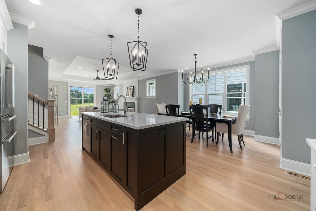 Newly Constructed Hidden Oak of Highland Park Gem! This fabulous new neighborhood is tucked away in a private and serene location in Northern Highland Park. Luxury awaits as you enter the the front door into the light and bright foyer. This fabulous floorplan offers both flexibility and functionality, beginning with a living space off the foyer that can be a formal living room or a first floor living room/office featuring a stunning coffered ceiling. The sightline as you walk through the front hall opens all the way out the back slider, and the gorgeous green views will wow you from the start. Luxury finishes are at every turn. The oak floors, the wainscotting details, the upgraded light fixtures and the exquisite touches impress in every space. The kitchen features upgraded cabinetry, quartz countertops, Bosch stainless appliances, gorgeous backsplash and fabulous island. Adjacent dining space is open and perfect for entertaining. Kitchen and dining space flow seamlessly into the family room with elevated tray ceiling and crown molding, fireplace with custom millwork and tile detail. This is truly a space family will want to gather. The first floor primary suite is a private retreat with tray ceiling detail, walk-in closet, and an en suite bath that is bright, beautiful and drenched in natural southern light. A second bedroom on the main floor with an en suite is a perfect spot for guests to relax. Upstairs you will find a loft, perfect for a home office, den, or family gathering space. The two additional bedrooms upstairs share a spacious hall bath with luxury finishes form top to bottom. The unfinished basement is ready for your finishing touches, or you can work with the builder to add finishes. Outside you have a concrete patio and a view of The Preserve of Highland Park, filled with walking trails and scenic views. Convenient to highways, downtown Highland Park and vibrant downtown Highwood, this Highland Park subdivision is a perfect place to call home.