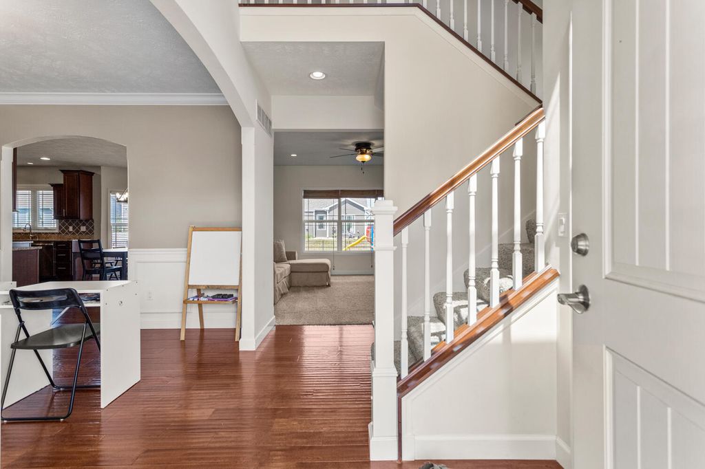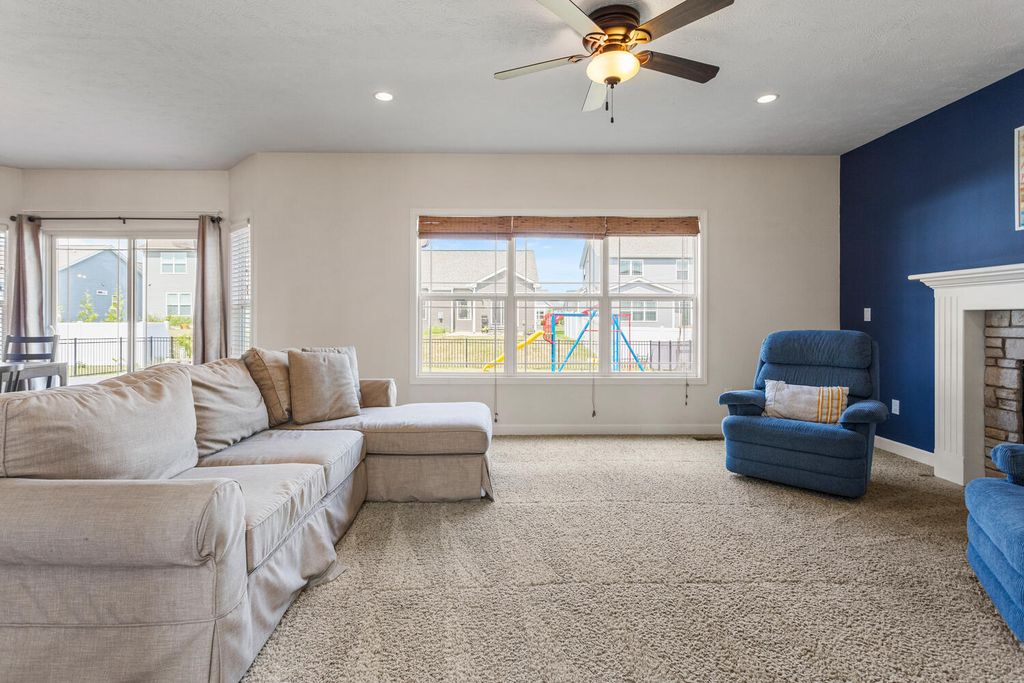 This beautifully maintained and spacious two-story, 4-bedroom, 3.5-bath home is located in the highly desirable Prairie Fields Subdivision and offers over 2,500 finished square feet of living space. The stunning 2-story entry welcomes you into a bright and inviting floor plan. The main level features an open kitchen with a center island, granite countertops, a pantry, and a cozy breakfast nook, flowing seamlessly into the large living room with a gas fireplace. A formal dining room with crown molding and an arched opening adds timeless charm, while a convenient half bath completes the first floor. Upstairs, the master suite offers a relaxing retreat with a whirlpool tub and a separate stand-up shower. The finished basement expands your living space with a family room, wet bar, full bath, and abundant storage. Enter outside to the oversized fenced-in backyard with a deck, fire pit, and pergola-perfect for entertaining or unwinding. Additional highlights include Pella windows throughout and a roof installed in 2020. Great home ready for its new owners! Call today to schedule an appointment.