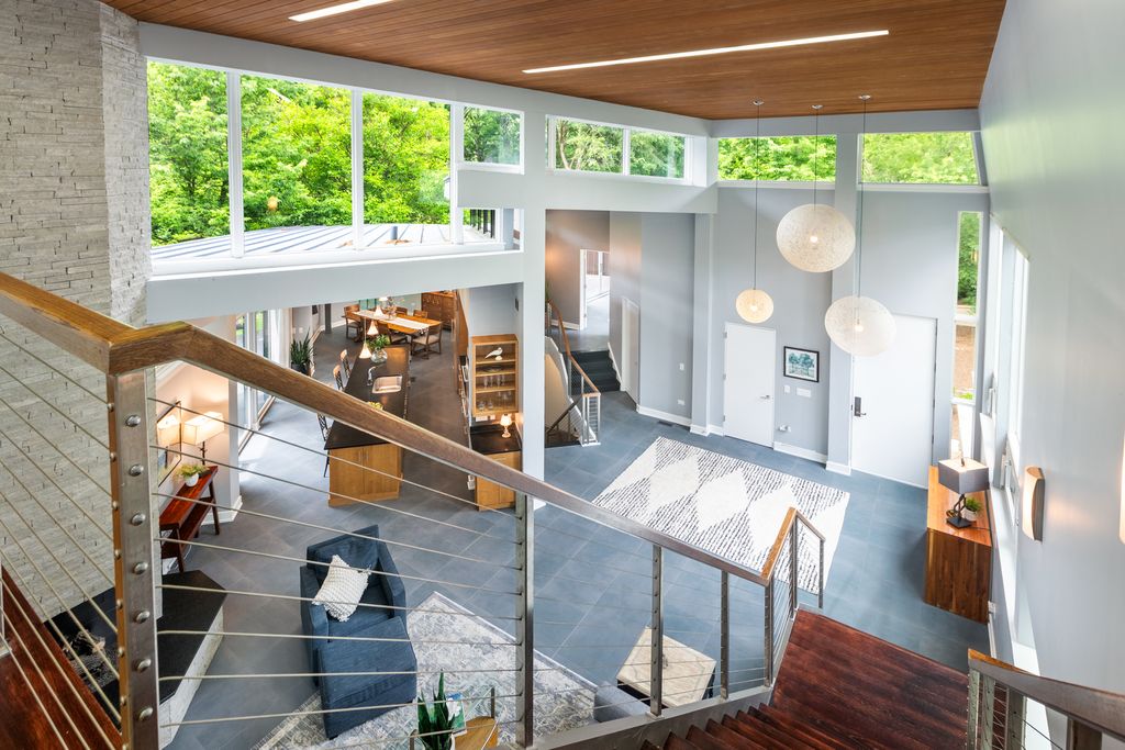 Welcome to one of Naperville's most prestigious modern estates-603 Driftwood. Designed by renowned architect JGMA and built by Jeff Muellner, this 2013 architectural masterpiece is situated on over 1.5 acres of serene, wooded landscape just minutes from downtown Naperville. Encompassing more than 6,300 square feet, the home boasts a striking exterior of Brazilian Ipe and Teak Cumaru woods paired with a custom Rheinzink zinc roof, offering unmatched sophistication and durability. Step inside to soaring 16-foot ceilings and a dramatic open floor plan with floor-to-ceiling windows that frame the lush backyard retreat. The chef's kitchen features top-of-the-line appliances and sleek modern design, complemented by a second full kitchen on the lower level-perfect for entertaining or multi-generational living. With 5 spacious bedrooms and 3.1 luxurious baths, every detail in this home reflects superior craftsmanship and high-end architectural style. Radiant heat entire lower level and bedroom, multiple A/C and furnaces for zoned control. 2 separate laundry rooms. Located within the highly acclaimed District 203 school boundaries: Highlands Elementary, Kennedy Junior High, and Naperville Central High School. Just minutes from the vibrant downtown Naperville shopping, dining, and the Riverwalk. A true private sanctuary blending world-class design with everyday comfort.