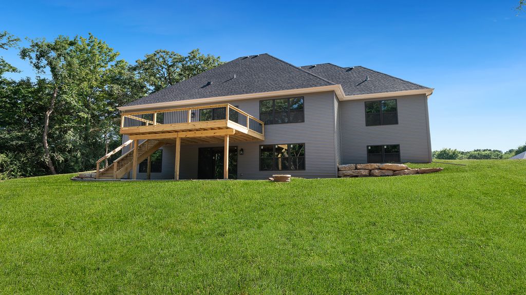 DON'T MISS YOUR CHANCE THIS TIME!!!! Custom Homebuilder, Oehlberg Construction presents Captivating Ranch, 2292 sq ft w 3 Bedroom, 2.5 Bathrooms, .95 acre, located in Whispering Winds Roscoe. Walk into 12 ft ceilings, and wall to wall windows overlooking foliage scenery on this mature lot! Unique kitchen consists of an 8-10 person quartz countertop island w plenty of storage designed by Custom Wellborn Cabinets. Room for a dining table adjacent front or side of the island, while overlooking the 27 x 20 Spacious Great Room, allowing for options w furniture. Step into your one of a kind deck, perfect for entertaining large groups. Main floor laundry room w half bath on main floor. . Additional Storage and Egress window for possible 4th bedroom for future use. Make this lower level YOURS! Plenty of room to additional bedrooms and living area. 3 car garage completely drywalled and plenty of space between Parking and doorway for future cabinets. Waterproof Rubber wall Foundation. Upgraded Kitchen appliances. Hononegah schools.