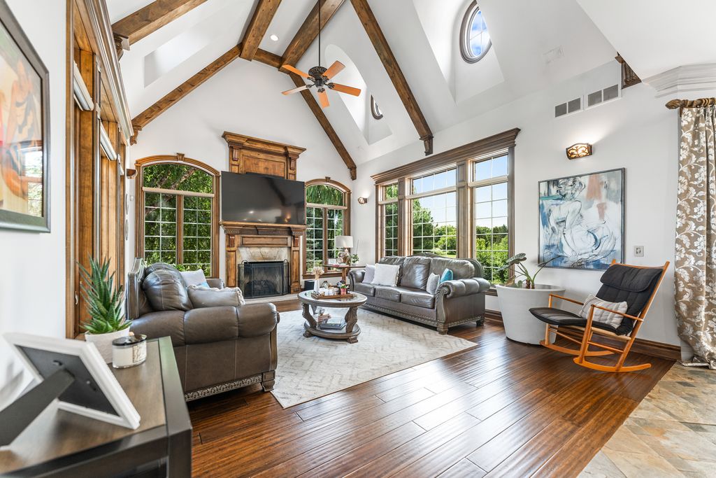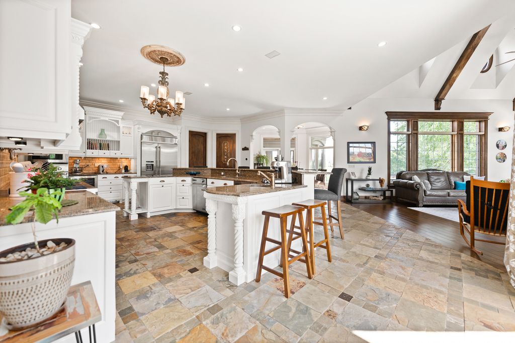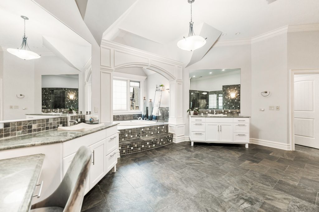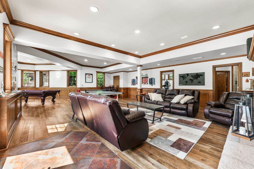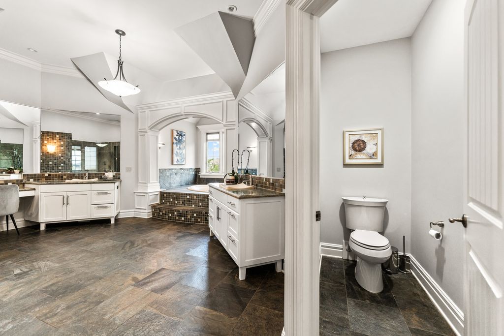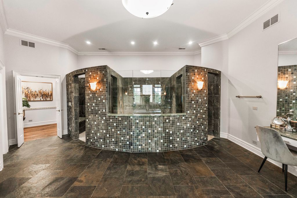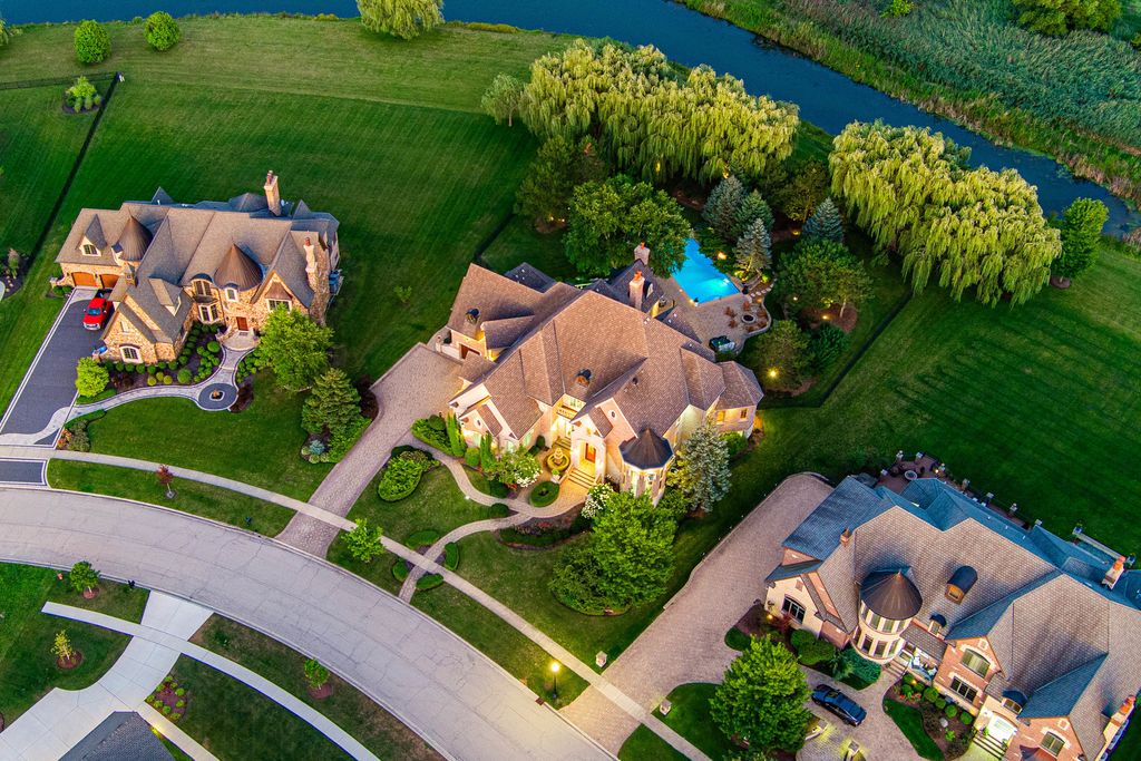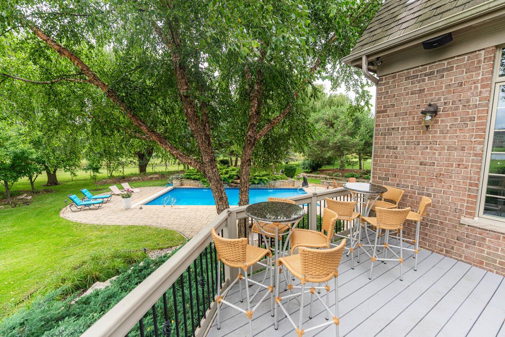 A brick paver driveway sets the tone leading to a residence that blends timeless craftsmanship with modern sophistication, while nestled on a private lot boasting extraordinary lake views. Experience the epitome of luxury living in this stunning Prairie Lakes home, where every detail has been thoughtfully designed to impress. Inside, soaring ceilings and exquisite trim work create an atmosphere of grandeur throughout the main living spaces. Throughout the home, a whole-house speaker system enhances both everyday living and elegant entertaining. The expansive kitchen, outfitted with high-end appliances, is complemented by a first-floor bar conveniently located near both the great room and elegant dining room - an entertainer's dream. Discover gorgeous cabinetry complementing the kitchen's style, along with beautiful slate flooring. A charming eating area adds to this space while seamlessly offering access to your screened-in porch and deck, where you can enjoy the peacefulness of your backyard. A separate family room offers additional space to gather, while a striking office showcases intricate custom millwork and floor-to-ceiling windows, creating an exceptional work-from-home setting. This residence was designed with everyday convenience in mind. Two staircases provide effortless access to the second floor, while the main level is enhanced by an expansive laundry room and a thoughtfully designed mudroom - both offering direct access to the garage. With the addition of two well-placed half bathrooms, every detail has been considered to ensure this home delivers top-tier function as well as style. The private first-floor bedroom with its own full bath and private balcony overlooking the pool offers the perfect in-law suite. Upstairs, the primary suite redefines luxury living. A private wet bar with wine refrigerator and an expansive balcony overlooking the grand backyard create an atmosphere of exclusivity and retreat. Discover a second-floor laundry leading to your beautiful custom closet with built-ins, a folding table, and ample storage. The spa-inspired bathroom is nothing short of extraordinary. At its heart, an architectural showpiece shower takes center stage - an expansive, glass-enclosed masterpiece wrapped in glistening mosaic tile. So much to enjoy in this space. All additional bedrooms are generously sized and thoughtfully designed, each featuring its own walk-in closet and a beautifully appointed private en-suite bathroom. The walk-out lower level is nothing short of magnificent, designed for both comfort and entertainment. Heated floors run throughout, leading to a gorgeous full bar, a private theater, and inviting recreational and family rooms that provide multiple spaces to relax and gather. A wine cellar, additional bedroom, and full bath complete the lower level, while direct access to the garage adds an additional layer of convenience to its luxury design. Outdoors, the extraordinary backyard is centered around a sparkling pool, perfectly positioned to capture calming lake views and a lifestyle of refined leisure. Set on a fabulous private lot accented by mature trees, the home offers both beauty and privacy. This residence is more than a home - it's a lifestyle of elegance, comfort, and sophistication. Set in the heart of St. Charles, the home is a close distance from the highly rated District 303 schools, top-tier private schools, and the lively downtown area offering fine dining, boutique shopping, and beautiful river views of the Fox River. Enjoy easy access to parks, trails, and renowned golf courses! The home boasts updated flooring throughout (2023), including the first-floor bedroom, family room, second level, and lower level. Major systems were upgraded with three new heating/AC units (2023) and two water heaters (2019). A new pool filter (2025) and fresh interior paint (2021 & 2023) complete the updates.
