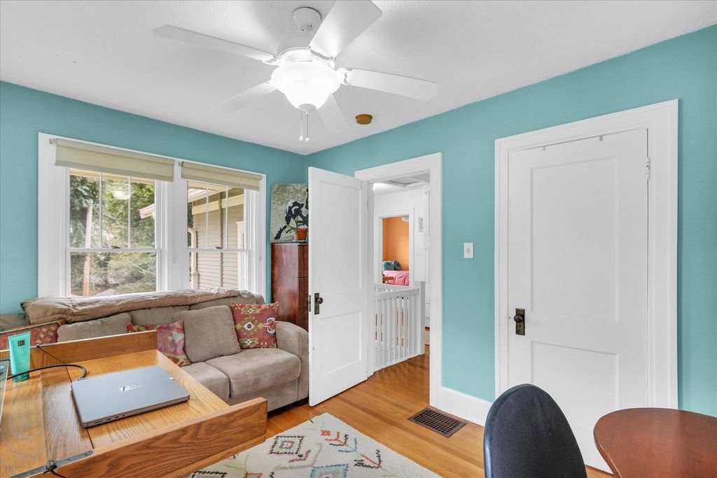 Nestled in Urbana's sought-after neighborhood, you'll find this charming 2-story home. A welcoming sunroom greets you at the entry, offering a cozy space filled with natural light and an inviting transition into the rest of the home. The main level showcases hardwood floors with a fireplace in the front living room. The dining room provides the perfect setting for gatherings and opens directly to the spacious back deck for easy indoor-outdoor living. Large windows continue in the bright, updated kitchen and plenty of cabinets for functionality. The main floor is complete with a convenient half bath that was recently updated. Upstairs boasts 3 bedrooms and a full bathroom, with charming built-ins in the hallway. The professionally designed front yard offers a thoughtfully arranged landscaping, creating a peaceful and private space. Continuing outside, the backyard is fenced-in and a detached 2-car garage provides additional storage. Improvements including Pella windows (2022), a new roof and gutters (2020), and a new water heater (2025)-ensure peace of mind, while maintaining the timeless appeal of the home. This move-in ready home features the best of both worlds with a wonderful location close to campus and meaningful updates you'll appreciate!