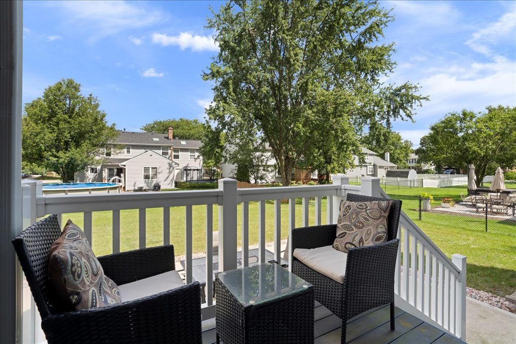 Welcome to this beautifully updated 4-bedroom, 2.5-bath home tucked away on a desirable cul-de-sac in Downers Grove. Elevated on a raised lot, this residence exudes pride of ownership and has been thoughtfully maintained and upgraded throughout. From gleaming hardwood floors throughout to modern recessed lighting, you'll notice the attention to detail from the moment you step inside. The welcoming foyer opens into a sun-filled living room that flows seamlessly into the spacious dining room, perfect for hosting family and friends. The heart of the home is the chef-inspired kitchen, fully renovated in 2017, and designed with sleek granite countertops, a full-height granite backsplash, custom cabinetry, and a vented hood range. Stainless steel appliances and a cozy breakfast nook with sliding doors to a brand-new composite deck perfect for grilling or morning coffee, leading down to your paved patio and spacious backyard. Just off the kitchen, the inviting family room offers a warm brick fireplace with a gas starter, creating the ideal spot for relaxing evenings. A convenient powder room completes the main level. Upstairs, the expansive primary suite features two closets and a spa-like ensuite bath with a walk-in shower, multiple shower heads, and a custom tiled niche. Three additional generously sized bedrooms and an additional full bath with a tub round out the second floor. The finished basement provides exceptional versatility with marble flooring, multiple windows making the space inviting and bright, and a newer drop ceiling. Whether you envision a media room, home office, playroom, or even a fifth bedroom, this level adapts to your lifestyle. Entertaining is a breeze with built-in cabinetry, granite counters, beverage storage, and a fridge, while a dedicated utility area with a newer washer and dryer plus two sump pumps adds peace of mind. Major updates include a new roof (2018, under warranty), vinyl siding (2021), windows (2018), and freshly painted interiors. The attached 2-car garage and attic storage add even more functionality. Located in a quiet, friendly neighborhood with top-rated schools, parks, and convenient access to shopping, dining, highways, and transportation, this home is just 3.4 miles from downtown Downers Grove and the Metra express line, only 27 minutes to Chicago. Recognized by Forbes as one of America's Friendliest Towns, Downers Grove offers an unmatched sense of community. Lovingly cared for and on the market for the first time in over 20 years, this rare opportunity is not to be missed!