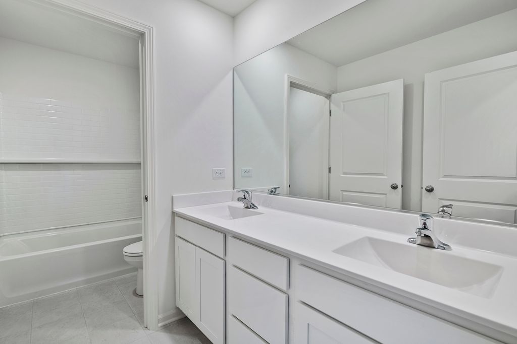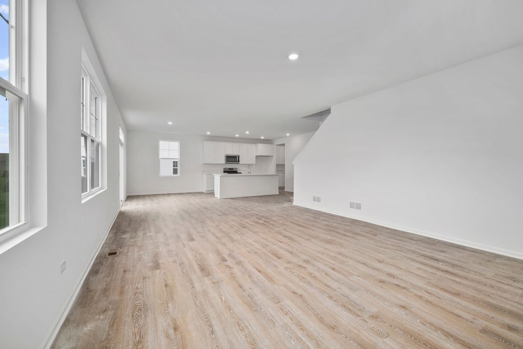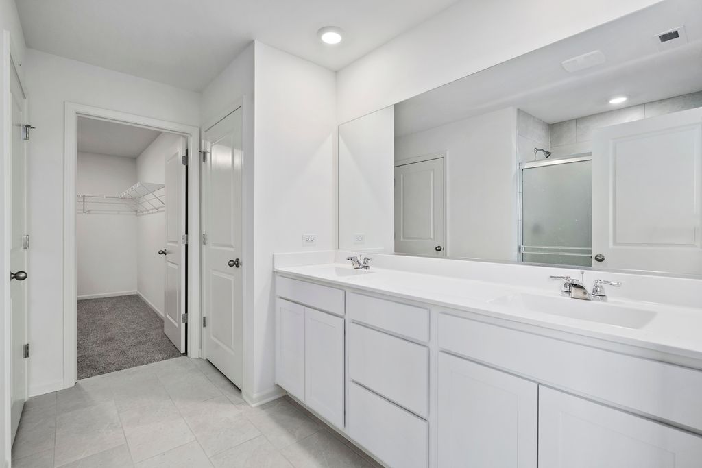 Discover yourself at 14936 South Parkview Drive in Plainfield, Illinois a beautiful new home in our Greenbriar community, located in Plainfield North School District 202. This home is ready for a move-in! Homesite backs to pond and includes fully sodded yard, landscape package, and stone accents on the front of the home. The Coventry plan offers 2,836 square feet of living space with a flex room, 4 bedrooms, 2.5 baths, 3 car garage, 9-foot ceilings on the first floor, and full basement with lookout. Entertaining will be easy in this open-concept kitchen and family room layout with a large kitchen island with an overhang for stools, 42-inch designer cabinetry with crown molding and soft close drawers. Additionally, the kitchen features a butler's pantry, modern stainless-steel appliances, quartz countertops, and easy-to-maintain luxury vinyl plank flooring. More flexible space is waiting upstairs with the second-floor loft, offering unlimited potential to suit your needs. Enjoy your private getaway with your large primary bedroom and en suite. The primary bath includes a raised height dual sink, quartz top vanity, and walk-in shower with glass shower doors. Convenient walk-in laundry room, 3 additional bedrooms with a full second bath, and a linen closet compete the second floor. All Chicago homes include our America's Smart Home Technology, featuring a smart video doorbell, smart Honeywell thermostat, smart door lock, Deako smart light switches and more. Exterior photo of actual home. Exterior and interior photos are of similar home and model home. Actual home built may vary.