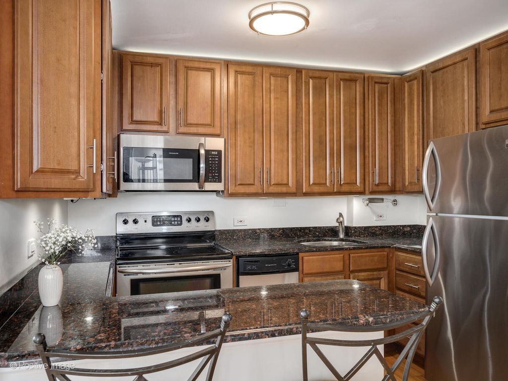 Live above it all in this beautiful 2 bed, 1 bath condo at Bryant House in Sandburg Terrace. Enjoy breathtaking views of Lake Michigan, Lincoln Park and the city skyline from an expansive private balcony-perfect for entertaining or relaxing. The spacious primary bedroom features a soundproof wall for unmatched quiet and tranquility. You'll love the abundance of storage with 22 linear feet of closets, including a walk-in in the primary and double closets at entry-all with full-height doors for easy access. Second bedroom is the perfect office or bedroom with closet and windows overlooking Lincoln Park. Solid wood floors throughout, custom kitchen cabinetry with under mount lighting, new lighting fixtures, and fresh paint complete this bright, stylish home. Don't miss this serene retreat in the heart of the city! Public transportation is a breeze with multiple trains and four bus lines nearby the building. Enjoy full-service living with a 24-hour doorman, enhanced building security, on-site laundr, rooftop deck and fitness room. Pet-friendly building (with registration and applicable fees). Residents also have access to tennis courts, two outdoor pools, rentable party rooms, basement storage, and garage parking. HOA dues include internet and cable.