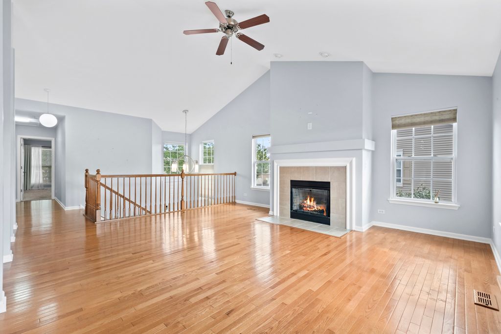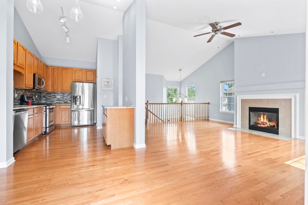 Sun-filled end-unit in Herons Landing featuring 3 bedrooms, 4 full baths, and an open main level with cathedral ceilings. The granite/SS kitchen offers abundant cabinet space, while the primary suite includes an en-suite with soaking tub and separate shower. A partially finished basement with a full bath provides flexible rec/guest space and storage. Enjoy outdoor living on the private patio and balcony. Meticulously maintained and truly move-in ready, with a convenient location near shopping, dining, and expressway access.