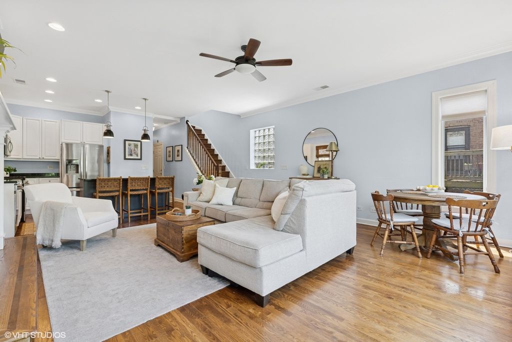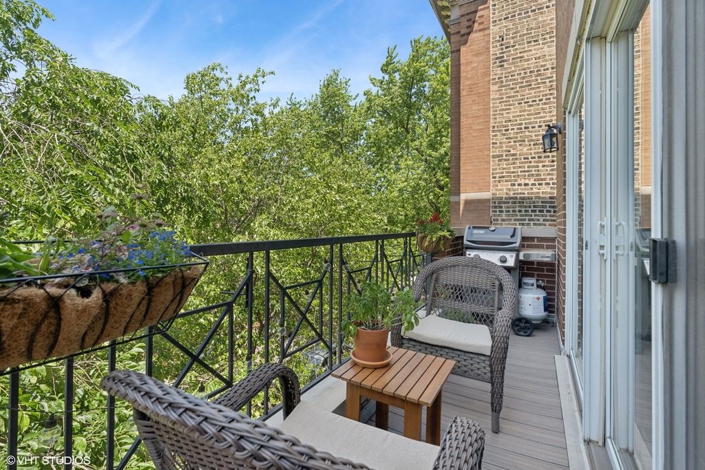 Welcome to your sophisticated sanctuary at 3509 North Fremont Street, Unit 3F in Lake View! This top-floor penthouse duplex-up delights with its spacious design, reminiscent of a single-family home. Nestled on a peaceful, tree-lined, one way street, the unit features an open floor plan drenched in natural light from oversized windows. Enjoy the luxury of a private deck situated amongst the tree-tops, accessible from the living room, perfect for entertaining. The modern kitchen is outfitted with stainless steel appliances and white cabinetry, while a convenient half bath serves the main floor. Retreat upstairs to the sublime primary suite complete with a walk-in closet and en-suite bath with double sinks. With in-unit laundry, central AC, and parking, this home offers ultimate comfort. Nearby Wrigley Field games & concerts, Gallagher Way, Southport Corridor dining hotspots, parks, and the Addison EL train keep city life at your doorstep.