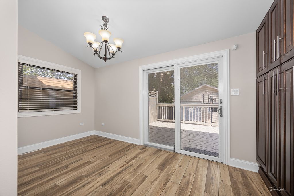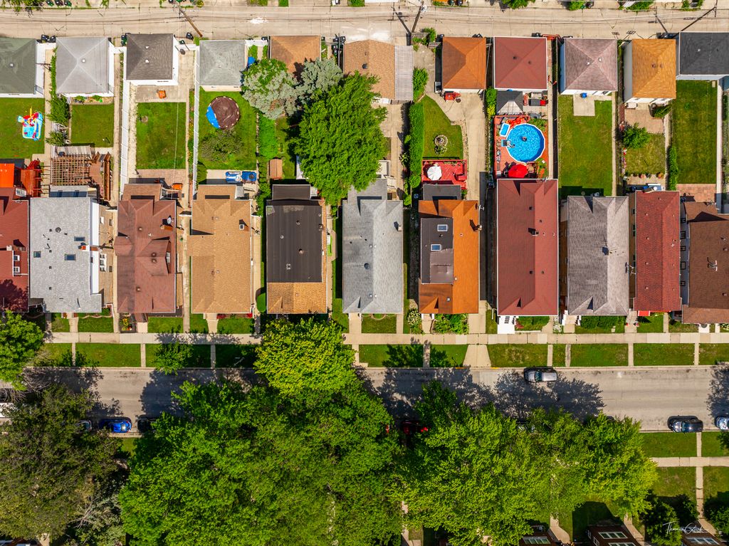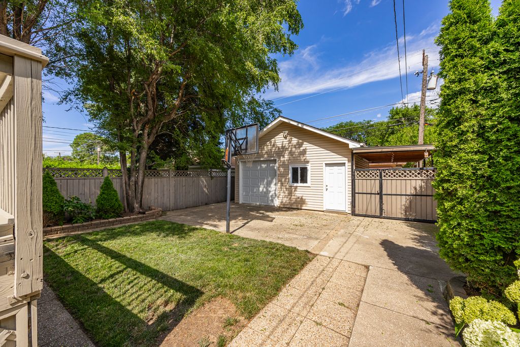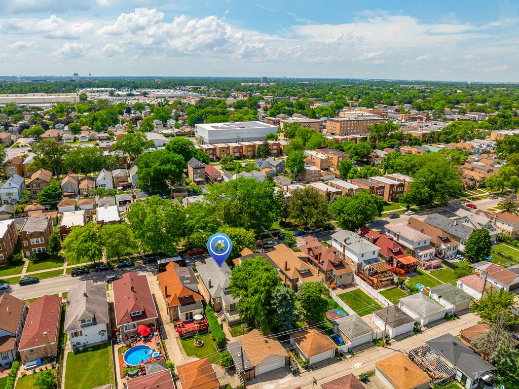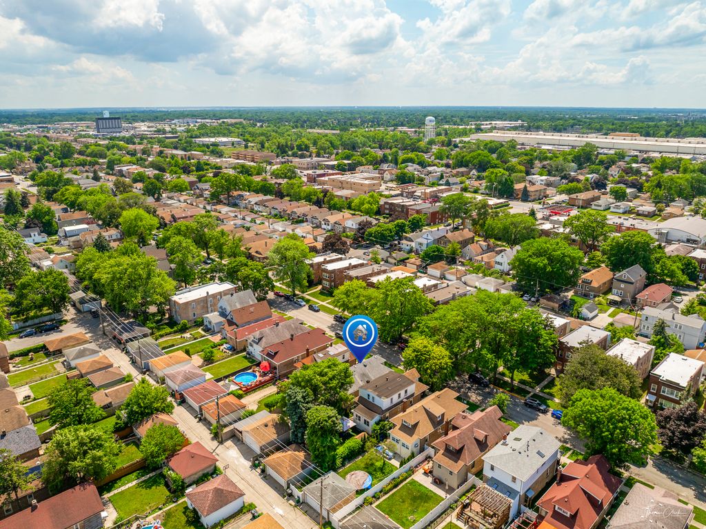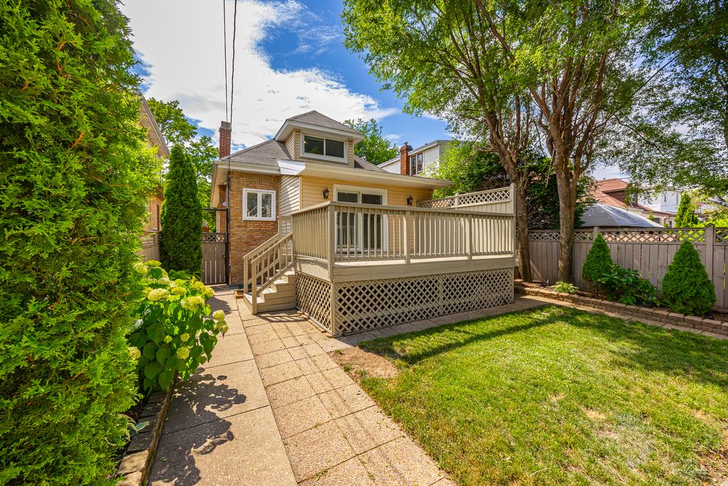 Stunning 4-bedroom, 2.1-bath brick bungalow home offers 3,666 square feet of thoughtfully designed living space across multiple levels! Welcoming living room showcases elegant tray ceiling, chandelier, bay window, and block windows with limestone sills flooding the space with natural light! Formal dining room continues architectural excellence with a tray ceiling and chandelier. Kitchen updated in 2019 impresses with dark wood cabinetry, quartz countertops with peninsula, stainless steel appliances updated in 2020, subway tile backsplash, and pendant lighting. Adjacent breakfast room features wall-to-wall storage cabinets and sliding door access to recently refinished deck. Main level rounds out with two bedrooms and sophisticated full bathroom updated in 2020 boasting floor-to-ceiling custom tile, glass door shower/tub combo, block window, and granite vanity. Second floor presents two generously-sized bedrooms with new carpet, ceiling fan, and clever under-window storage, complemented by updated half bathroom featuring granite countertop. Walkout basement with refined granite stairs serves as entertainment haven with spacious recreation room, custom tile flooring, built-in storage, and recessed lighting. Additional basement features include full bathroom, two storage rooms, flexible bonus room perfect for home gym or office, and well-appointed laundry room with front-load washer/dryer, folding counter, and utility sink. Exterior delights with 2-car garage new in 2019 featuring 1 two car door - 16 ft, 1 single door facing house, car port, 6ft privacy fence installed in 2020, basketball hoop with concrete pad, and storage shed. Located minutes from FitzGerald's, Distro Music Hall, Jewel Osco Grocery store, and Euclid Square Park. Convenient access to I-290 and Metra's BNSF line makes commuting a breeze. Don't miss this opportunity to make this exceptional home yours!