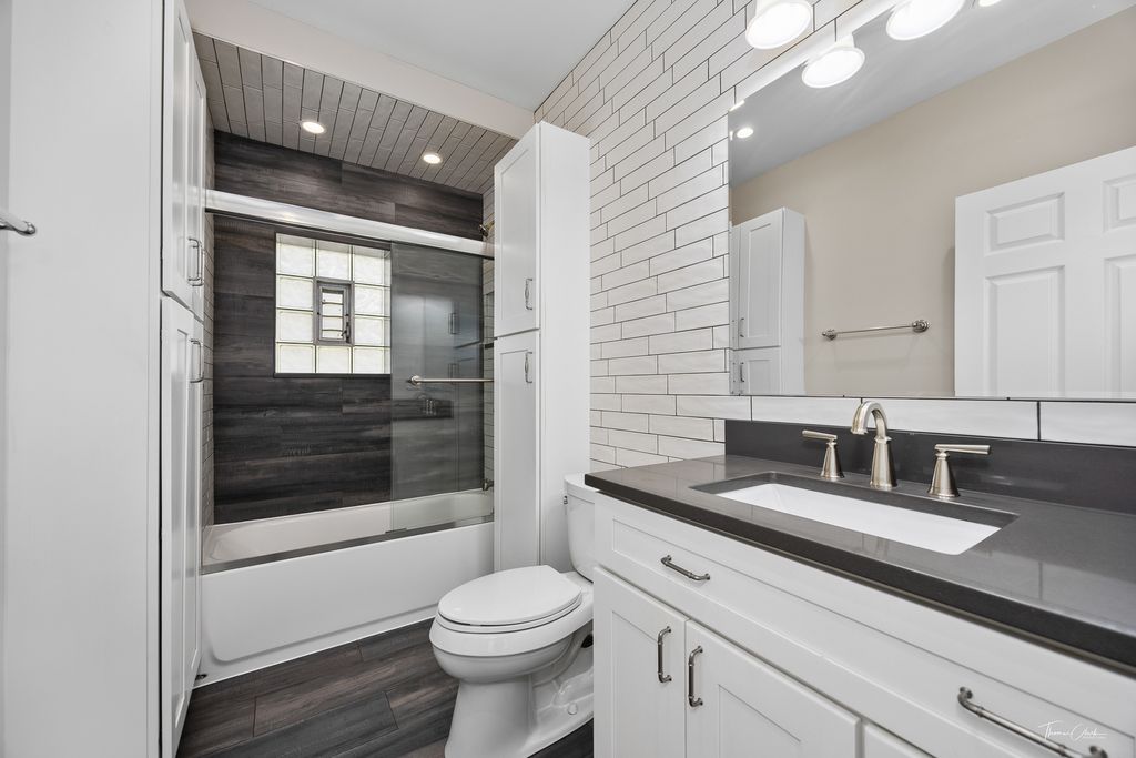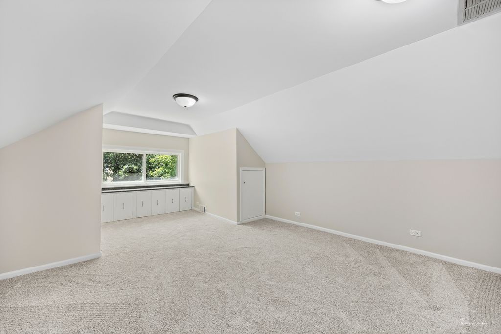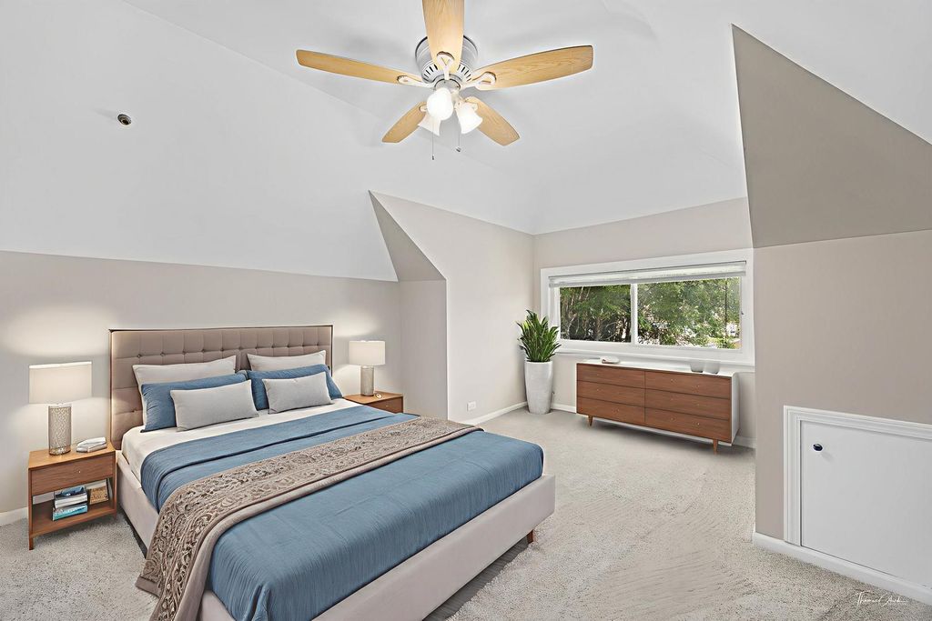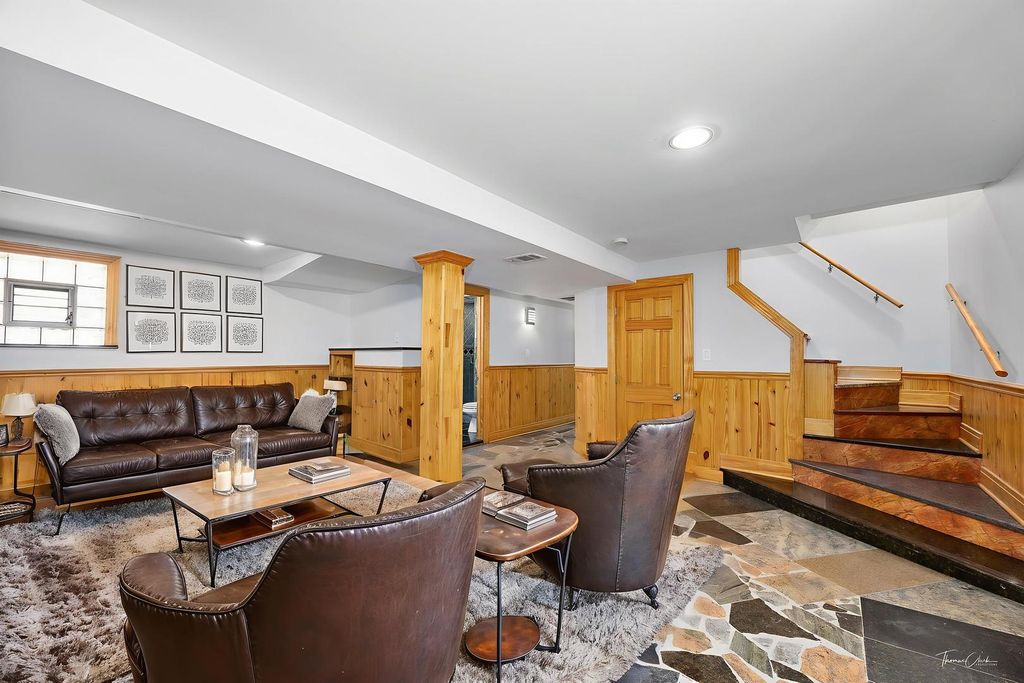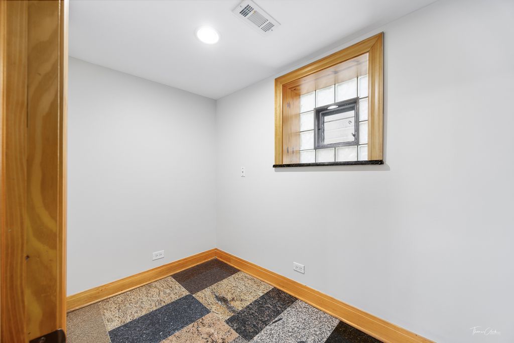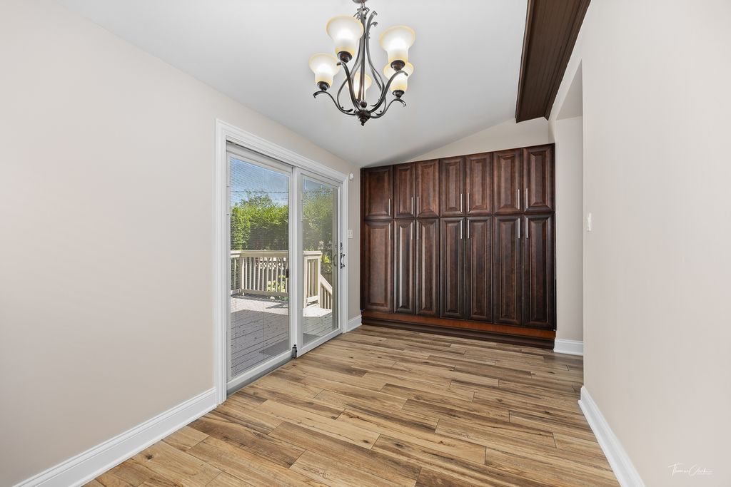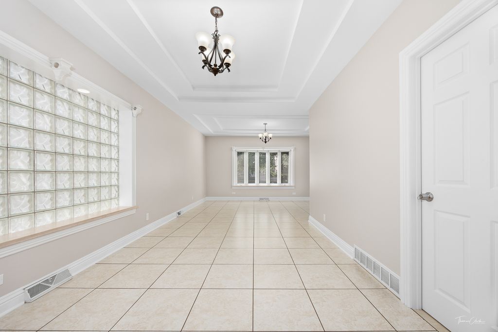 Stunning 4-bedroom, 2.1-bath brick bungalow home offers 3,666 square feet of thoughtfully designed living space across multiple levels! Welcoming living room showcases elegant tray ceiling, chandelier, bay window, and block windows with limestone sills flooding the space with natural light! Formal dining room continues architectural excellence with a tray ceiling and chandelier. Kitchen updated in 2019 impresses with dark wood cabinetry, quartz countertops with peninsula, stainless steel appliances updated in 2020, subway tile backsplash, and pendant lighting. Adjacent breakfast room features wall-to-wall storage cabinets and sliding door access to recently refinished deck. Main level rounds out with two bedrooms and sophisticated full bathroom updated in 2020 boasting floor-to-ceiling custom tile, glass door shower/tub combo, block window, and granite vanity. Second floor presents two generously-sized bedrooms with new carpet, ceiling fan, and clever under-window storage, complemented by updated half bathroom featuring granite countertop. Walkout basement with refined granite stairs serves as entertainment haven with spacious recreation room, custom tile flooring, built-in storage, and recessed lighting. Additional basement features include full bathroom, two storage rooms, flexible bonus room perfect for home gym or office, and well-appointed laundry room with front-load washer/dryer, folding counter, and utility sink. Exterior delights with 2-car garage new in 2019 featuring 1 two car door - 16 ft, 1 single door facing house, car port, 6ft privacy fence installed in 2020, basketball hoop with concrete pad, and storage shed. Located minutes from FitzGerald's, Distro Music Hall, Jewel Osco Grocery store, and Euclid Square Park. Convenient access to I-290 and Metra's BNSF line makes commuting a breeze. Don't miss this opportunity to make this exceptional home yours!