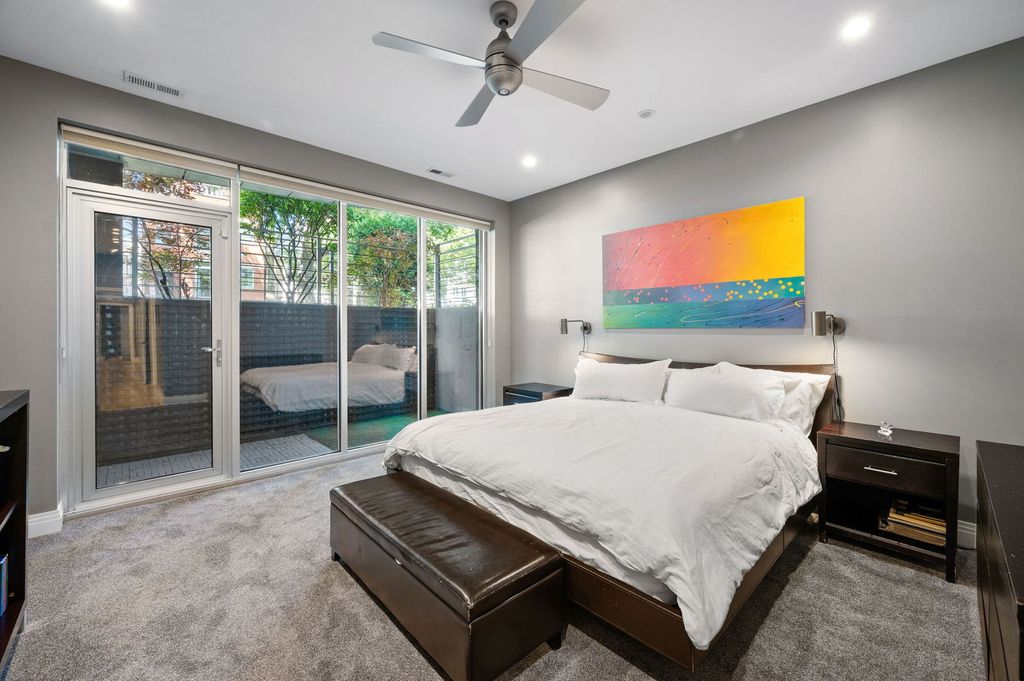 This modern Lincoln Park condo offers three bedrooms, 2.5 baths, and three private outdoor retreats - including a newly updated roof deck above the garage. The chef's kitchen features a striking granite waterfall island, Thermador and JennAir appliances, custom cabinetry, a wine refrigerator, and wet bar. Bright and open, the space flows into a sitting area with access to the expansive private deck, ideal for entertaining. An extra-wide living room with soaring ceilings, floor-to-ceiling windows, and gas fireplace extends to a private front balcony. The primary suite includes a spa bath with steam shower, soaking tub, and dual vanities, plus a custom walk-in closet and private terrace. Two additional bedrooms and a full bath complete the single-level layout. Additional highlights include hardwood floors, surround sound wiring, side-by-side laundry, garage parking with oversized storage, and custom window treatments. Perfectly situated where Lincoln Park meets Lakeview, this home is a short walk to dining, shopping, parks, and transit, with easy guest parking and quick CTA access.