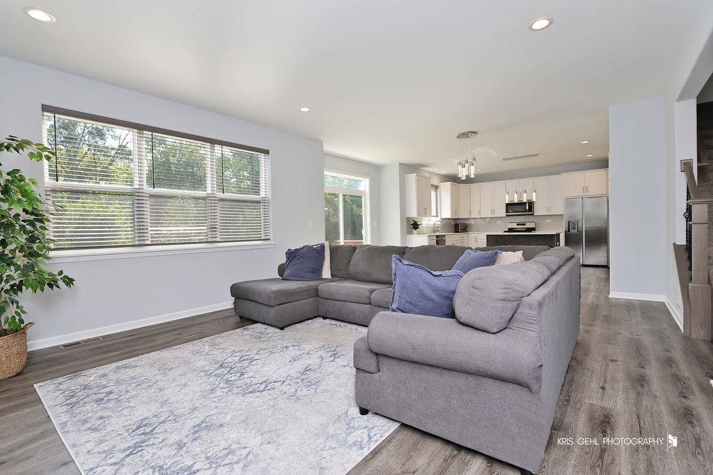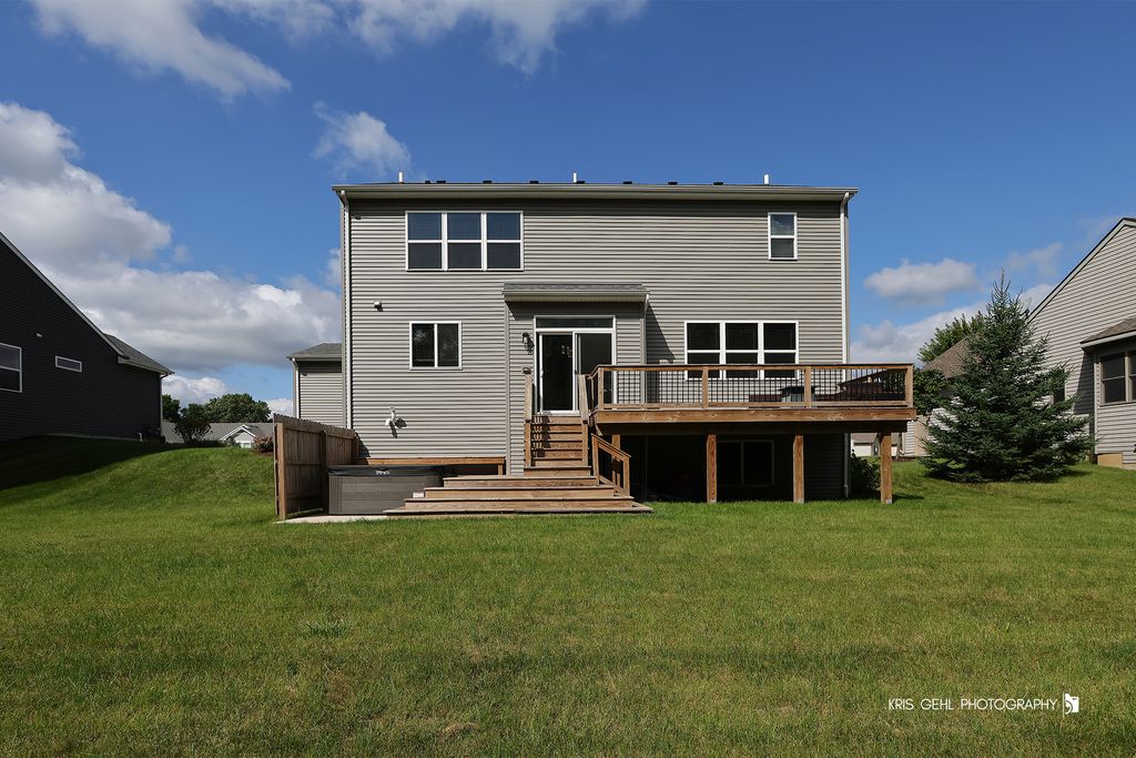 Skip the wait and settle into this beautifully maintained 4-bedroom, 2.5-bath home located in the highly desirable Sunset Ridge neighborhood. Built with modern living in mind, this open-concept layout offers the perfect blend of function and style. Step into the spacious main level featuring a dedicated home office, a formal dining area, and a bright family room that flows seamlessly into the chef's kitchen. The kitchen is a standout with quartz countertops, a massive island, stainless steel appliances, ample cabinetry, and a double-door pantry-perfect for everyday living and entertaining. Upstairs, all four bedrooms are thoughtfully arranged around a convenient second-floor laundry room. The luxurious primary suite includes a large bedroom, dual closets with custom Wisconsin Closet organizers, and a spa-like bathroom with double sinks, a soaking tub, and a separate shower. Three additional spacious bedrooms share a full bath. The English basement offers bright natural light and is ready for your finishing touches, complete with a bathroom rough-in. Enjoy the outdoors from your custom tiered deck right off the kitchen-ideal for entertaining-with a built-in hot tub. The 3-car garage provides plenty of storage and room for all your toys. All of this in a top-rated school district, close to parks, trails, and all the amenities you need. Don't miss this opportunity-schedule your private showing today!