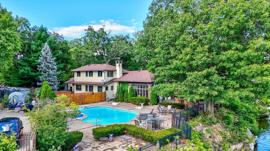 A unique opportunity to own a piece of riverfront architecture! This rvire front home offers amazing views and your own private inground pool. Stunning Prairie Style 1.5 Story on .75 acres facing Southwest on the Illinois River. Character, charm, built-ins, original stained glass windows & a 4 Season Sunroom round out only some of the many details this beautiful home possesses. Features: 1st Floor Master, wood beamed den, stately dining room, entertainment bar in the sunroom looking out at the turquoise pool, hardwood floors, wine cellar, finished basement & shady oak trees everywhere. Lot behind driveway adds value for your own dog park, playground or build an additional garage or guest suite. Come and live here and you'll be on vacation every day of your life.