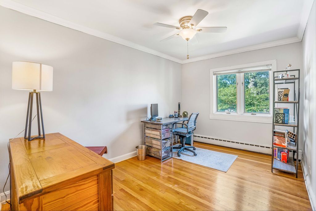 3BR / 1.5BA River Forest Home with Updates Throughout! Beautifully maintained home featuring refinished hardwood floors, crown molding, and custom blinds. Updated kitchen with ceramic tile floor and stainless steel appliances. Three bedrooms upstairs with a remodeled full bath featuring subway tile and glass shower door. Main level includes spacious living/dining rooms and a half bath with pedestal sink. Finished basement with tiled family room provides extra living space. Primary bedroom includes custom ELFA closet system. Additional highlights: automatic front/back security lights and new electrical circuit for A/C. Move-in ready and close to schools, parks, and all that River Forest has to offer!