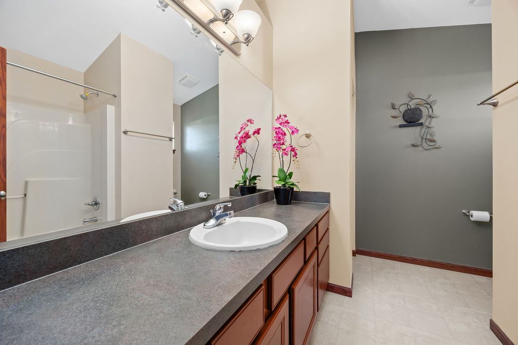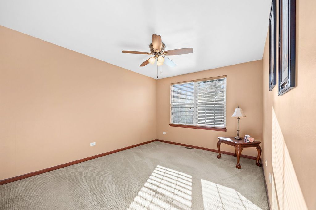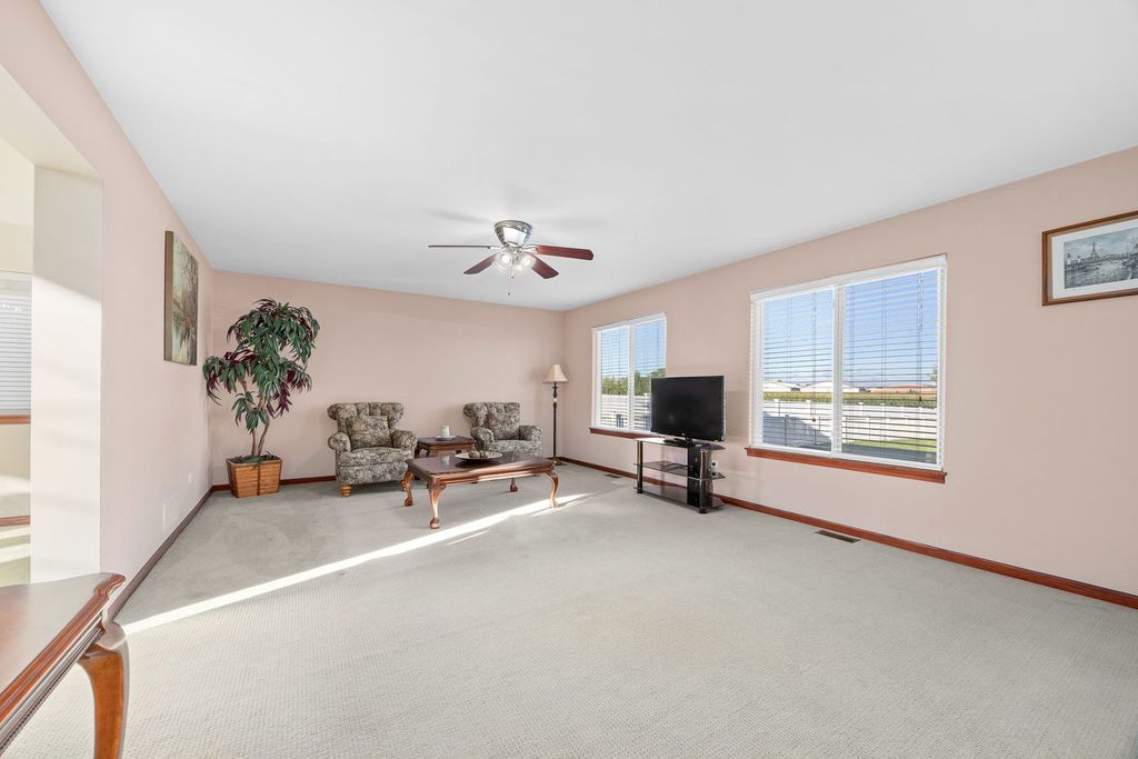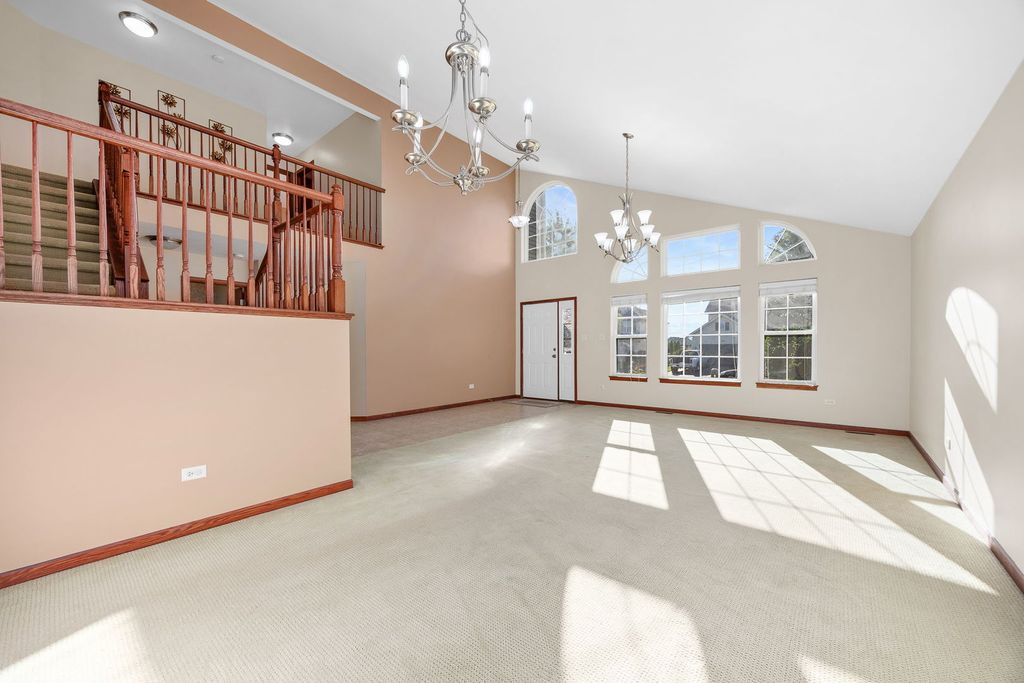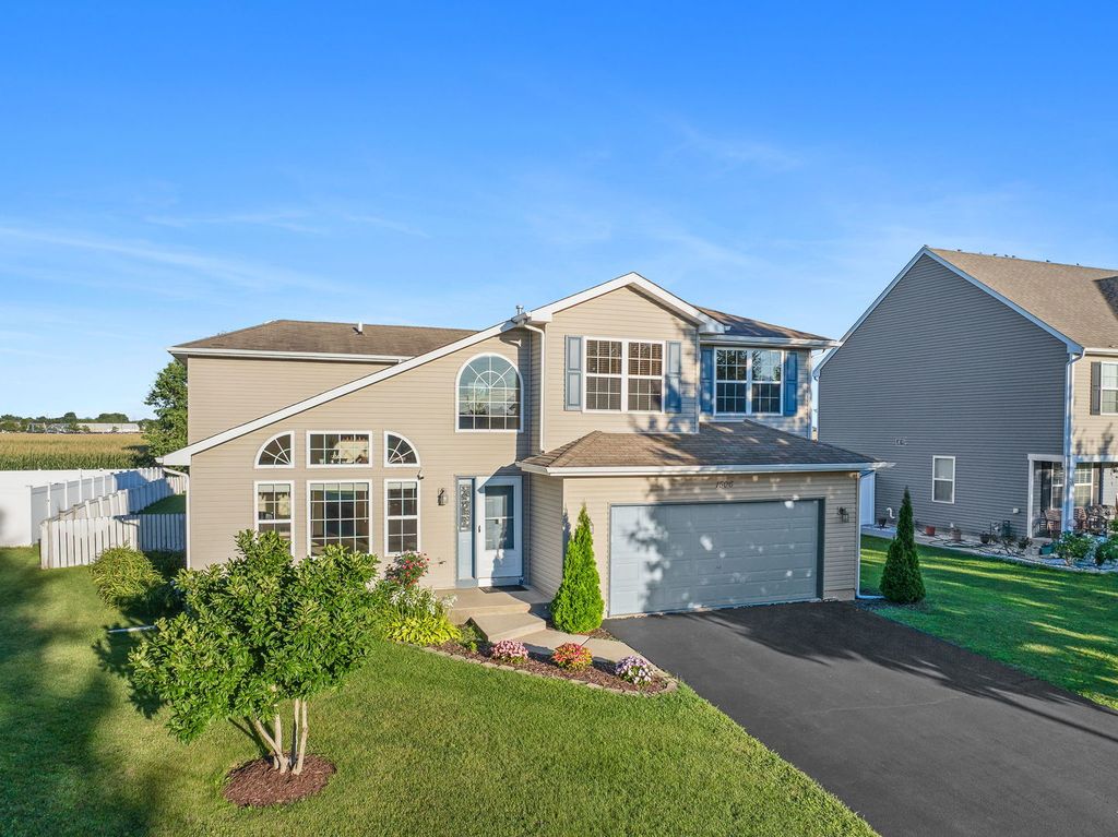 METICULOUSLY MAINTAINED HOME in Sought-After Fall Creek Subdivision! This stunning 4-bedroom, 2.5-bath home sits on one of the largest lots in the subdivision & offers the ideal blend of comfort, style & convenience. From the moment you arrive, you'll be impressed by the gorgeous curb appeal highlighted by professional landscaping adorned with fresh blooms. Inside, the open layout welcomes you with soaring vaulted ceilings through the foyer & a spacious family room filled with natural light. The chef's kitchen features stainless steel appliances, a range that vents to the outside & ample counter space-perfect for cooking & entertaining. The family room flows seamlessly to the oversized fenced backyard, where you'll enjoy peaceful farmland views, plenty of space to play or entertain & just the right amount of shade to keep it comfortable even in the summer. Upstairs, you'll find 4 spacious bedrooms including a primary suite with a large walk-in closet & en suite bath. A versatile loft area is perfect for a desk, play space or reading nook. The basement, with 9-ft ceilings & a rough-in for plumbing, offers abundant storage or the opportunity to create even more living space. Conveniently located just 5 minutes to I-55, with great shopping & dining at Mariano's, Costco & more nearby. Recent updates include a brand new water heater (2025), refrigerator, oven & deck (all 2016). This home truly has it all-space, privacy, updates & location.