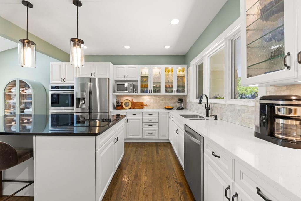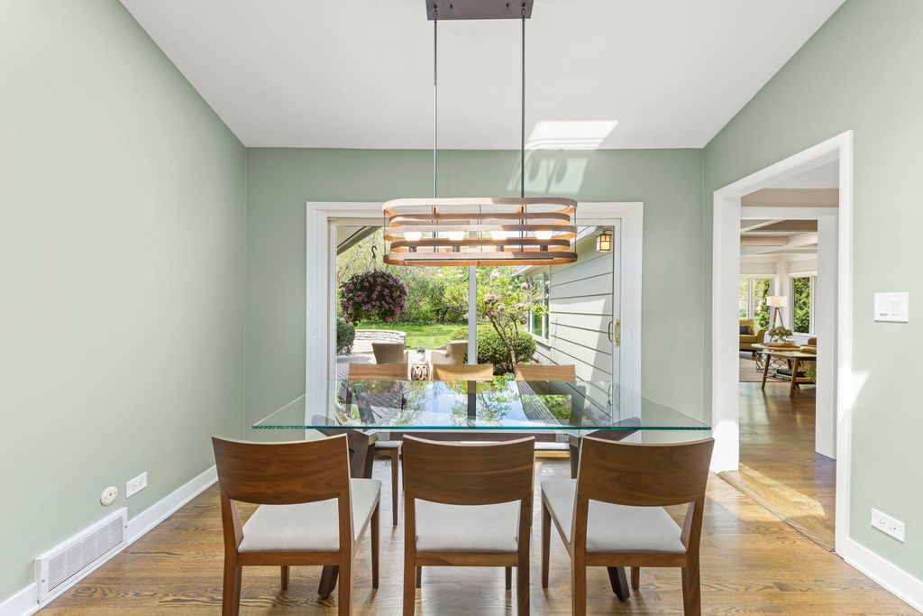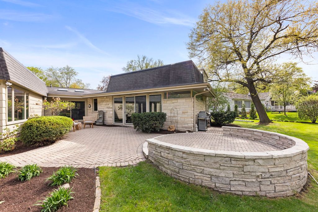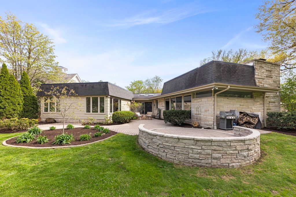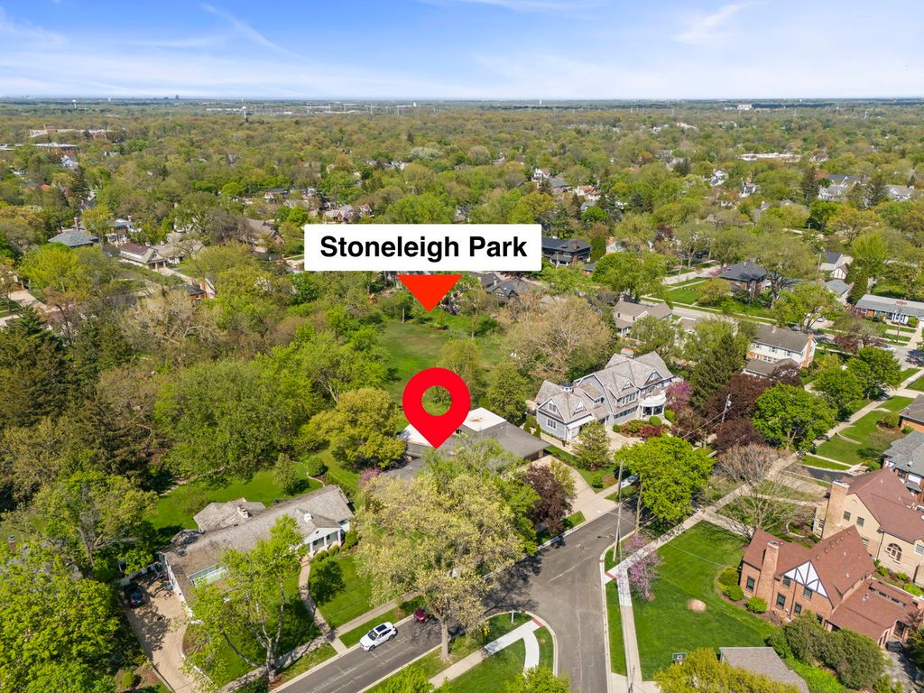 Amazing 4 bedroom, 3.1 bath, sprawling Mid-Century Modern ranch! Welcome to this in-town Glen Ellyn home backing to private Stoneleigh Park. Upon entering from the covered front porch, the foyer to main living room truly sets the stage for MCM architecture with use of natural stone, organic materials and connection to nature with the large flat windows and full windowed doors. Formal dining room opens to the living room that features a vaulted ceiling, floor to ceiling stone fireplace, stone walls and sliding glass doors to the patio, back yard and park. The light filled, white kitchen with center island features stainless appliances, informal dining with vaulted ceiling, skylight and patio doors to the rear courtyard. Expansive family room with coffered ceiling, wall of built-ins and windows with views also includes access to the courtyard, backyard and the park. *Stoneleigh Park is private and only available to the homes backing to the park.* From the attached 2.5 car garage or side door the updated mud room, laundry room and full bath offer everyday convenience. On the opposite side of the home is the large primary suite with new spa bath (2024) featuring double sink vanity, soaking tub and full body shower. In additional is a sitting area and abundant closet space. Three bedrooms and updated baths are included on the same level. This rare find offers elegance, privacy and 3500+ square feet all on the same level. Walkable to Metra train stop, upscale restaurants and shops, Lake Ellyn, Prairie Path and Sunset Park and Pool. Easy access to I355.