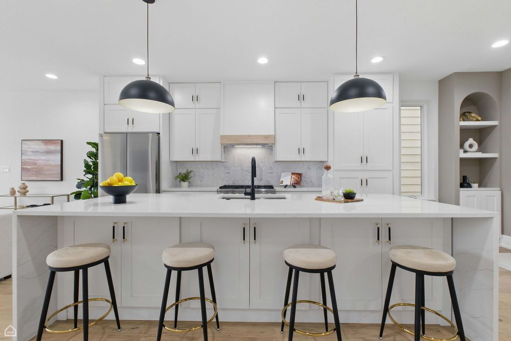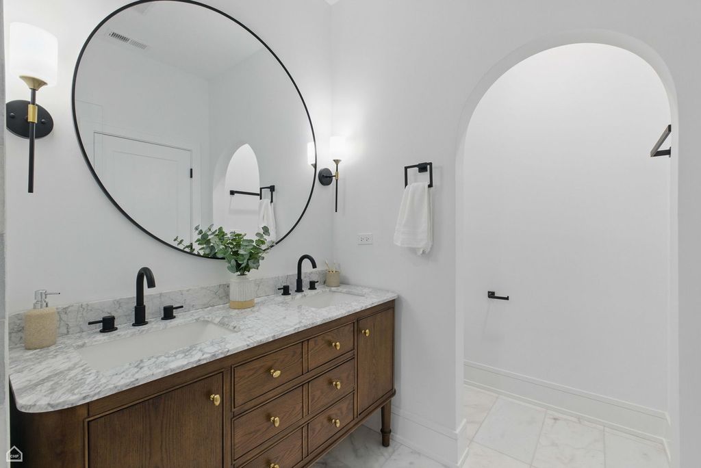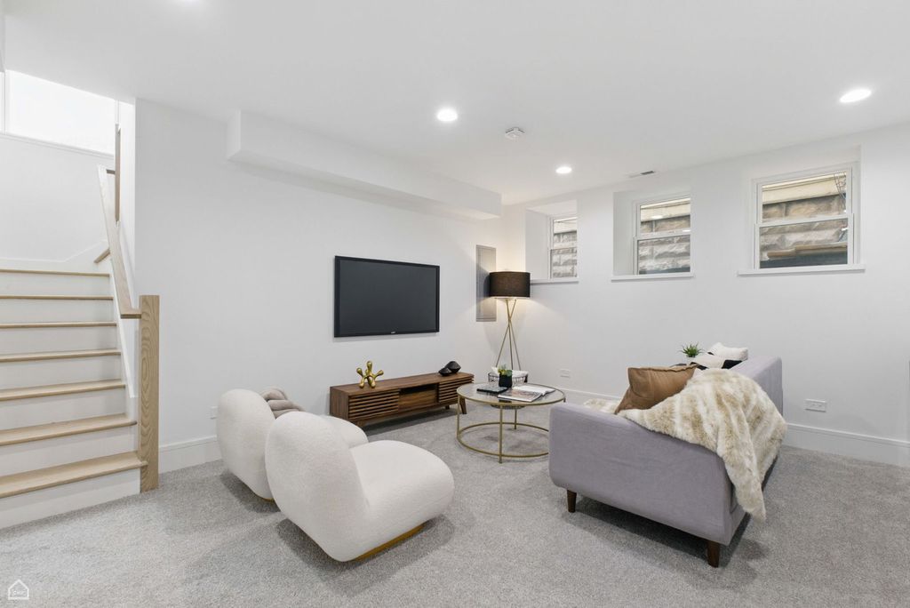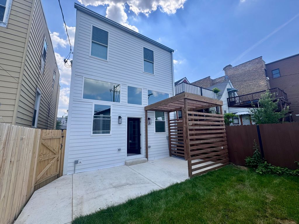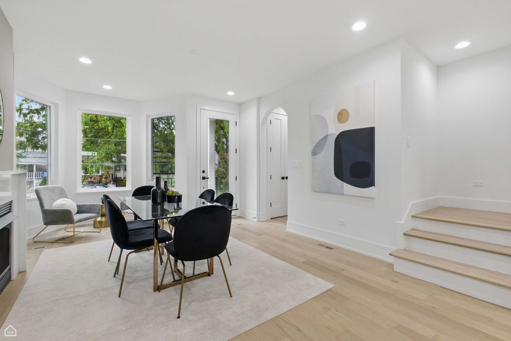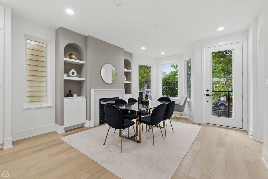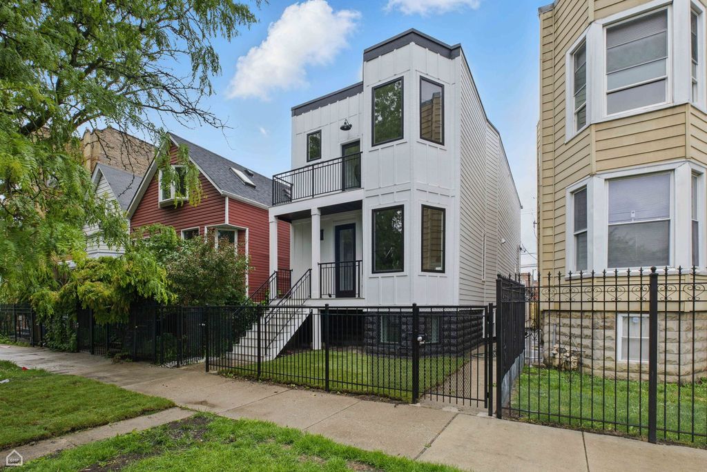 Don't miss the opportunity to own this stunning, fully renovated single family home in the heart of Logan Square. Meticulously remodeled, this 5 bedroom, 3.5 bathroom home pairs high end design with superior attention to detail. The entry opens to a bright and airy dining room featuring expansive wide-plank flooring, detailed custom millwork, and a gas fireplace with a quartz surround framed by arched built ins.The chef's kitchen features double stacked custom white cabinetry, a premium stainless steel appliance package, and a handcrafted wood wrapped hood. A striking quartz waterfall island anchors the space. The kitchen flows into a relaxing family area enhanced by custom built in shelving, providing elegant storage while maintaining a streamlined design. Upstairs, the luxurious primary suite includes a private deck, an expansive walk in closet, and a spa caliber ensuite bath. This retreat features floor to ceiling Calacatta marble tile, a double vanity complete with a soaking tub, rain showerhead, and handheld body spray. Two additional bedrooms, a full bath, and a well appointed laundry room with side by side machines and floating shelves complete this level. The fully finished lower level offers exceptional flexibility with a generous rec room, a sleek quartz topped wet bar and wine fridge, two additional bedrooms, and a full bathroom. Additional features include a functional mudroom off the rear entry, zoned HVAC, a backyard, and a detached 2 car garage. Ideally located just steps from the Armitage restaurant row, Palmer Square, the 606 Trail, and within easy reach of the Logan Square Blue Line and Healy Metra Station. Designed with both style and function in mind, this Logan Square beauty offers exceptional living in a prime location. Schedule your private tour today and make this Logan Square gem your own.