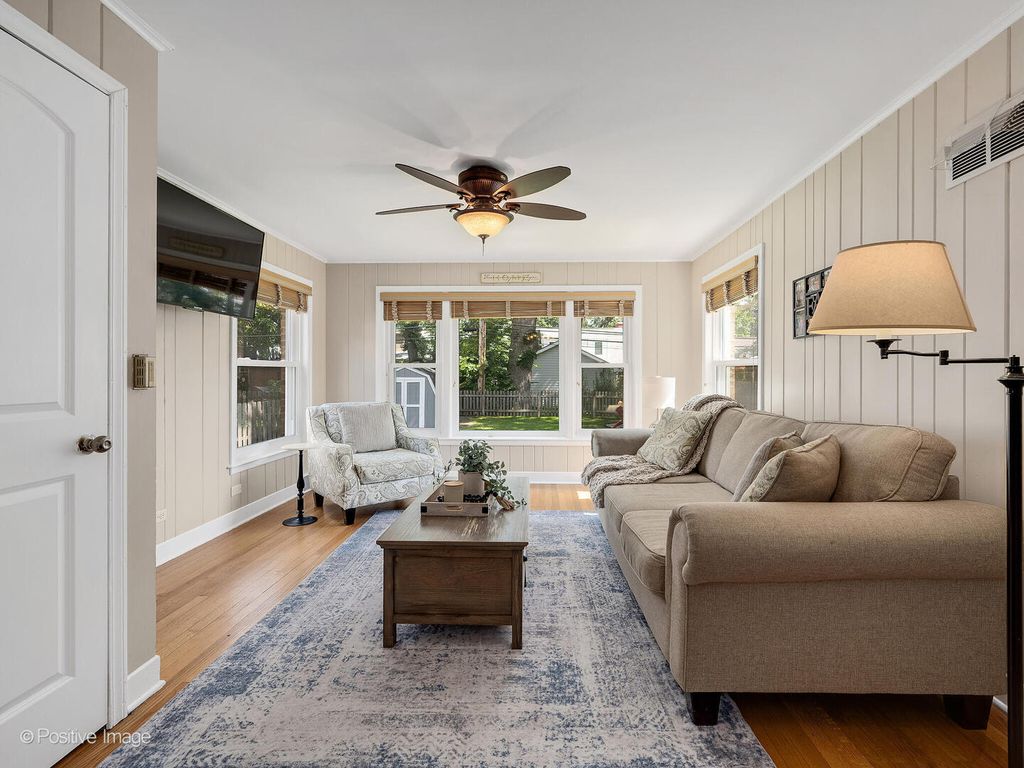 This beautiful Georgian home is nestled on a peaceful, tree-lined street in the desirable Harding Woods neighborhood. The home features hardwood floors throughout, a bright open circular floor plan and generously sized rooms. Step into a welcoming foyer with slate tile flooring, a staircase leading to the second floor and an updated powder room. The expansive living room, complete with a cozy wood-burning fireplace, offers lovely views of both the front and back yards. At the heart of the home is the central dining room, seamlessly connecting to the living room, a main-floor family room with picture-perfect views of the private backyard retreat, and the beautifully updated kitchen-featuring cream cabinetry, stone countertops, and stainless steel appliances. A convenient side door leads directly to the grilling deck. Upstairs, you'll find three bright and spacious bedrooms, each with wonderful closet space. A full hall bathroom and a walk-in linen closet complete the second floor. The partially finished basement adds valuable living space, including a mudroom area, home office with built-in desk, recreation room, laundry area, and plenty of storage/utility space. Outdoors, enjoy a fully fenced backyard with a large paver patio, circular gravel patio with built-in firepit, storage shed, and grilling deck off the kitchen. Located near highly rated schools including Lyons Township HS, the Salt Creek walking/bike path, parks, the public library, and within walking distance to the commuter train and downtown La Grange-this charming home offers both comfort and convenience in an unbeatable location.