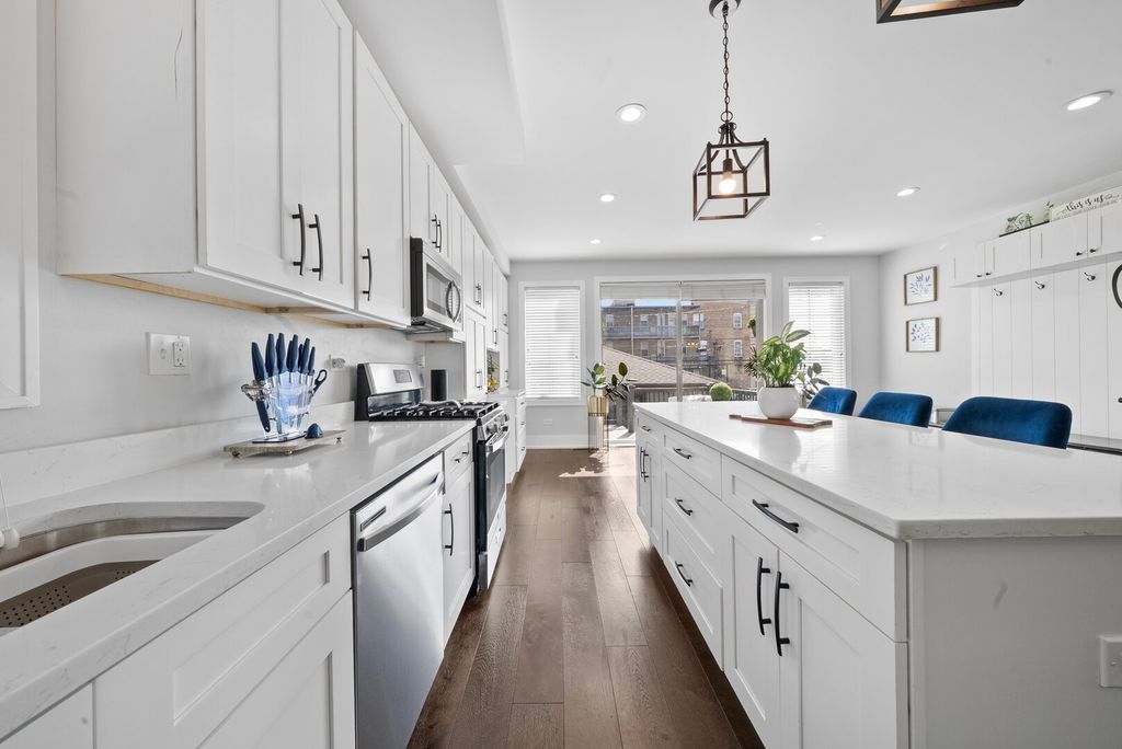 Built in 2021, this stunning newer-construction residence offers modern design and thoughtful details throughout. The first floor features an open-concept layout, perfect for entertaining, gatherings, and everyday living. Step into the spacious primary bedroom and enjoy your private second-floor balcony-a cozy spot for your morning cafecito or evening unwind. The primary suite is a true retreat, boasting a walk-in closet and a spa-inspired bathroom with a beautiful soaking tub, a full-body spray shower, and dual sinks. Inside, you'll also find custom window treatments and an oversized kitchen with an elongated island and extended, customized cabinetry-ideal for both casual meals and dinner parties. The finished basement adds incredible versatility with a fourth bedroom, full bathroom, and a multi-functional family room that can double as an office, guest space, or additional living area-with convenient walk-out access.